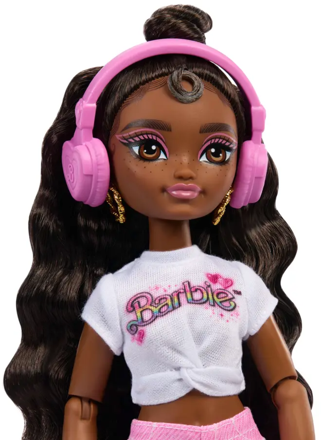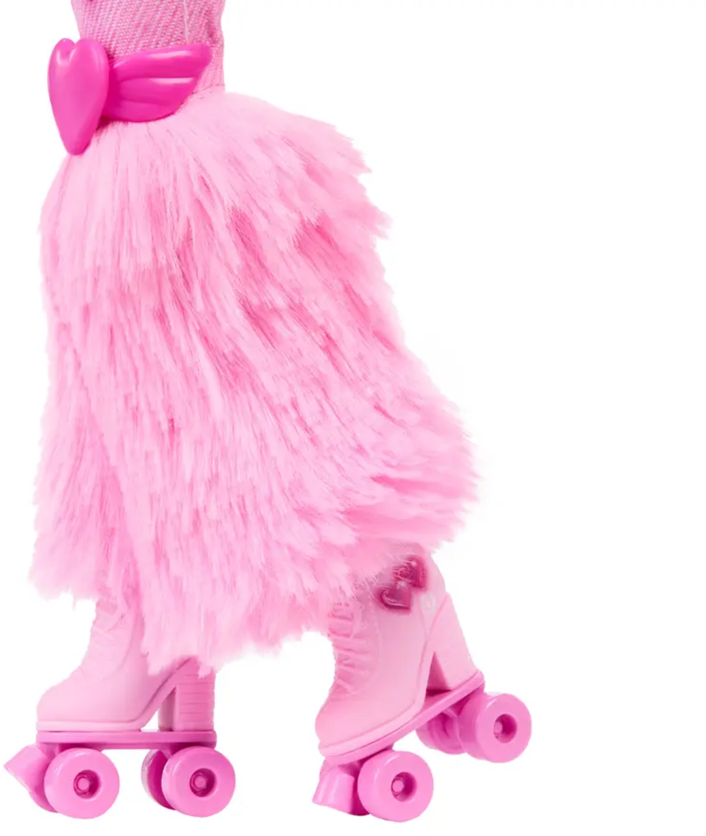 Die Barbie Brooklyn Rollschuh-Modepuppe ist bereit für jede Menge Musik- und Tanzabenteuer. Mit ihrem herz-inspirierten Outfit, den passenden Rollschuhen und 9 Zubehörteilen wie Stativ, Kopfhörer, Telefon und Kamera können Kinder eigene Choreografien und Geschichten erfinden. Die Puppe hat lange braune Haare, die sich vielseitig stylen lassen, und bietet kreativen Spielspaß für kleine Fans von Tanz, Musik und Mode.
