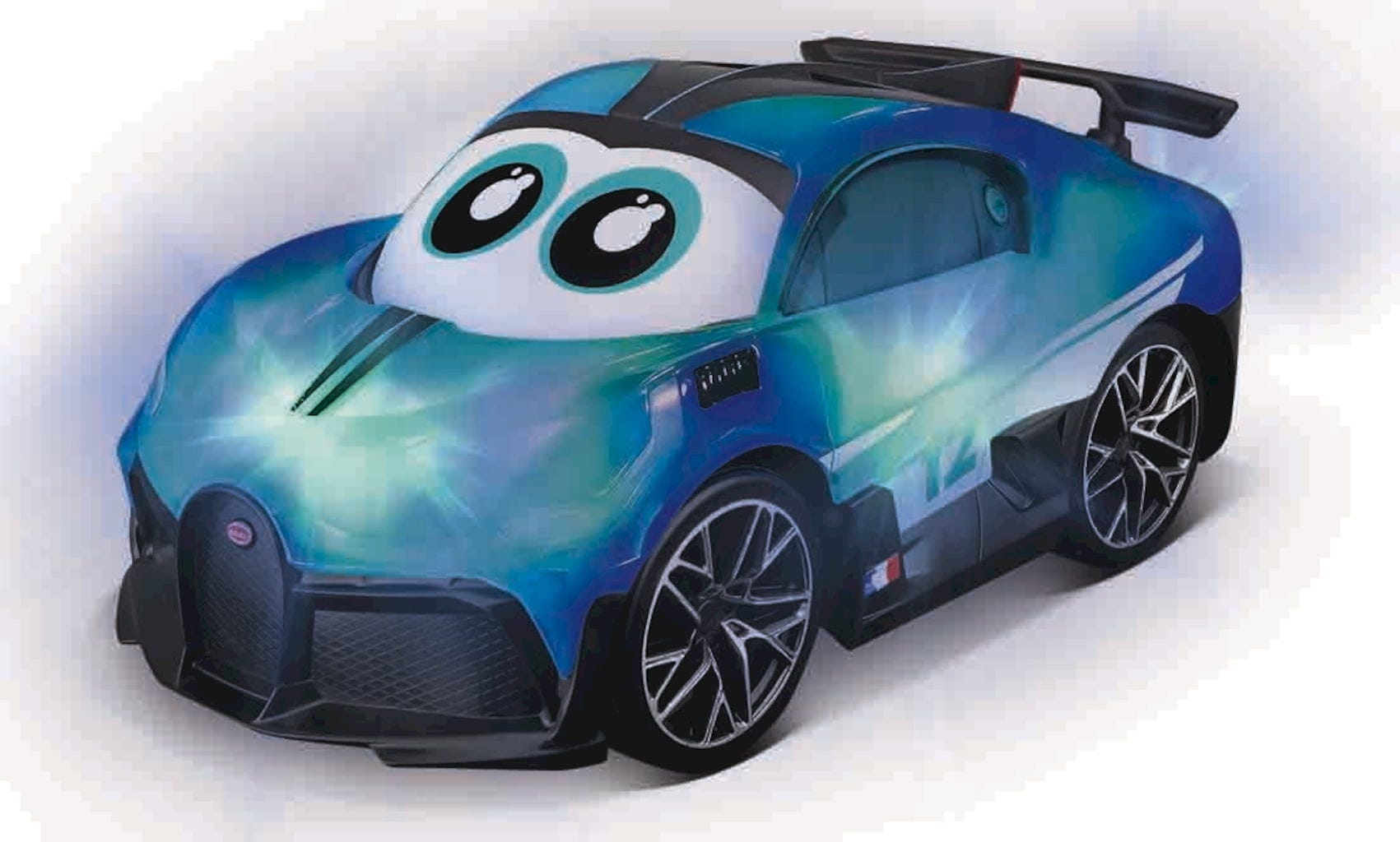 Der Bugatti Light Up Divo bringt Kinderaugen zum Leuchten! Durch einfaches Drücken auf das Fahrzeug aktivierst du die spektakulären Effekte des blauen Supersportwagens. Sein leuchtender Körper, der realistische Motorensound und die passende Musik schaffen ein einzigartiges und interaktives Spielerlebnis für kleine Entdecker:innen.