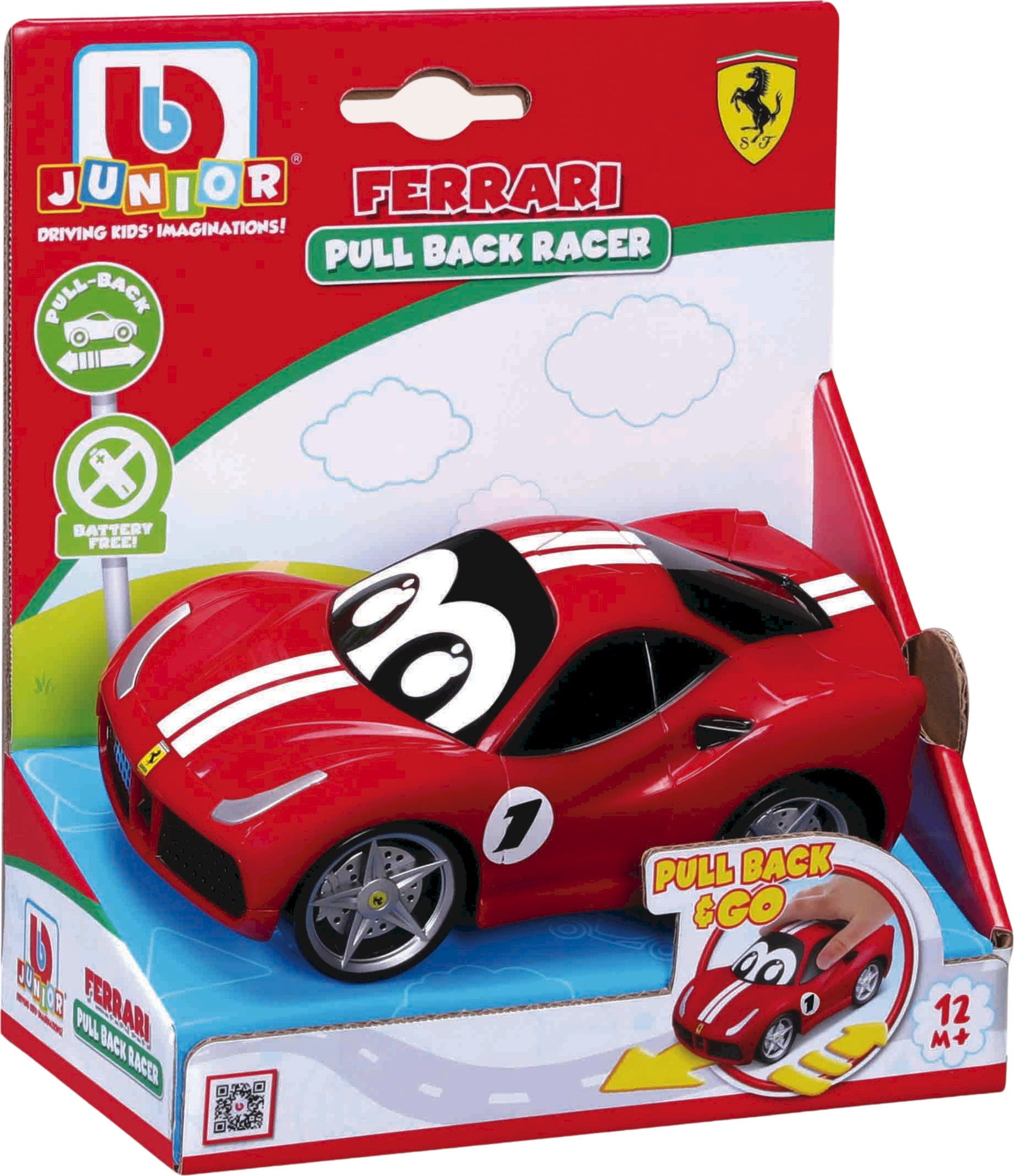 Mit dem My 1st Pullback Racer Ferrari 488 GTB von BBJunior werden deine Kleinsten zu echten Rennfahrer:innen! Der Rennwagen im klassischen Ferrari-Rot kommt ganz ohne Batterien aus: Einfach das Auto kurz zurückziehen, loslassen und schon flitzt der Sportwagen durch das Kinderzimmer.