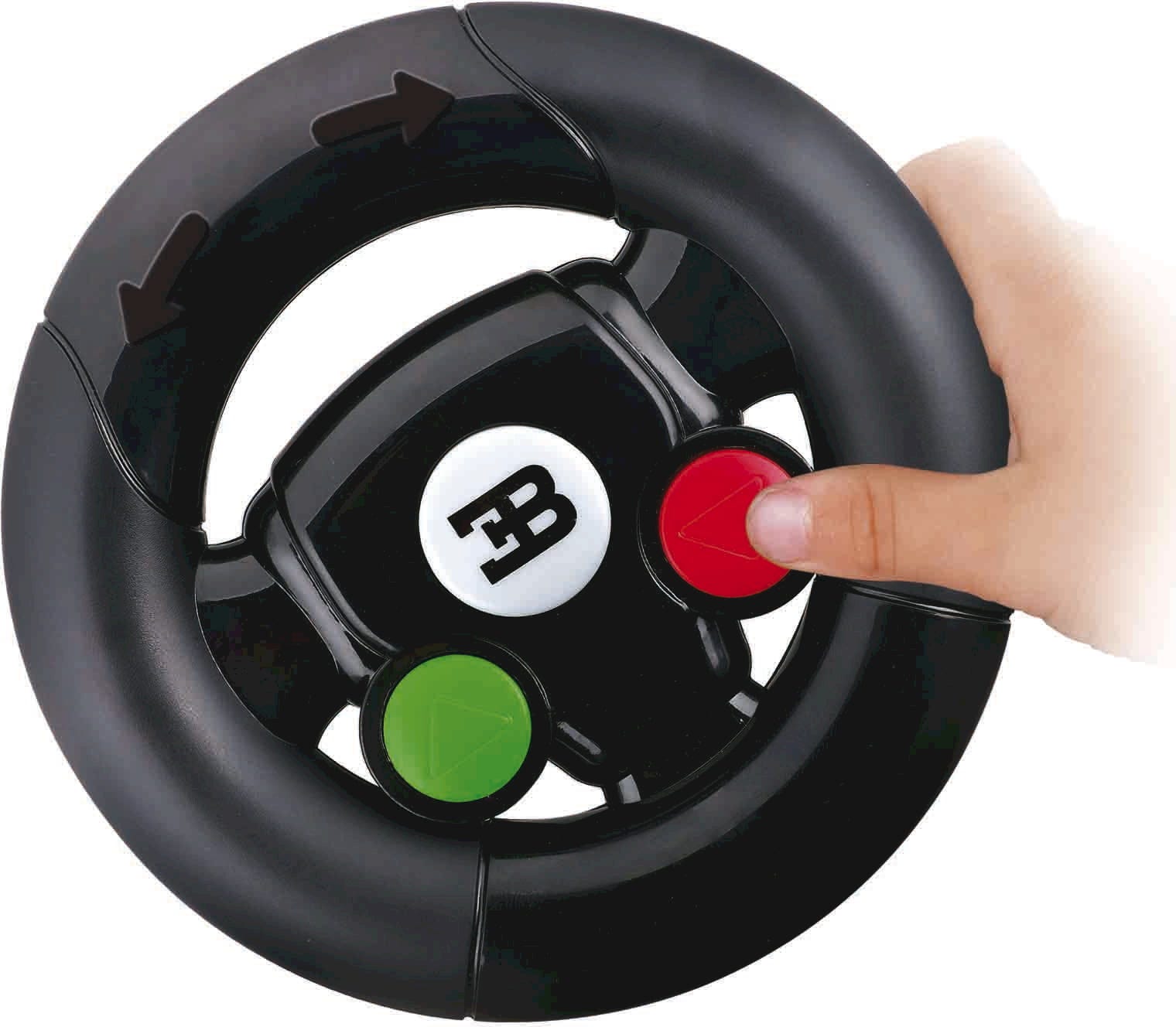Mit dem Bugatti My First RC von BBJunior wirst du zum Star auf der heimischen Rennstrecke! Dieser blaue Bugatti Divo wurde speziell für kleine Fahrer:innen ab 24 Monaten entwickelt. Die Fernsteuerung im coolen Lenkrad-Design ist kinderleicht zu bedienen: Du kannst den Flitzer mühelos nach vorne, zurück sowie nach rechts und links lenken.