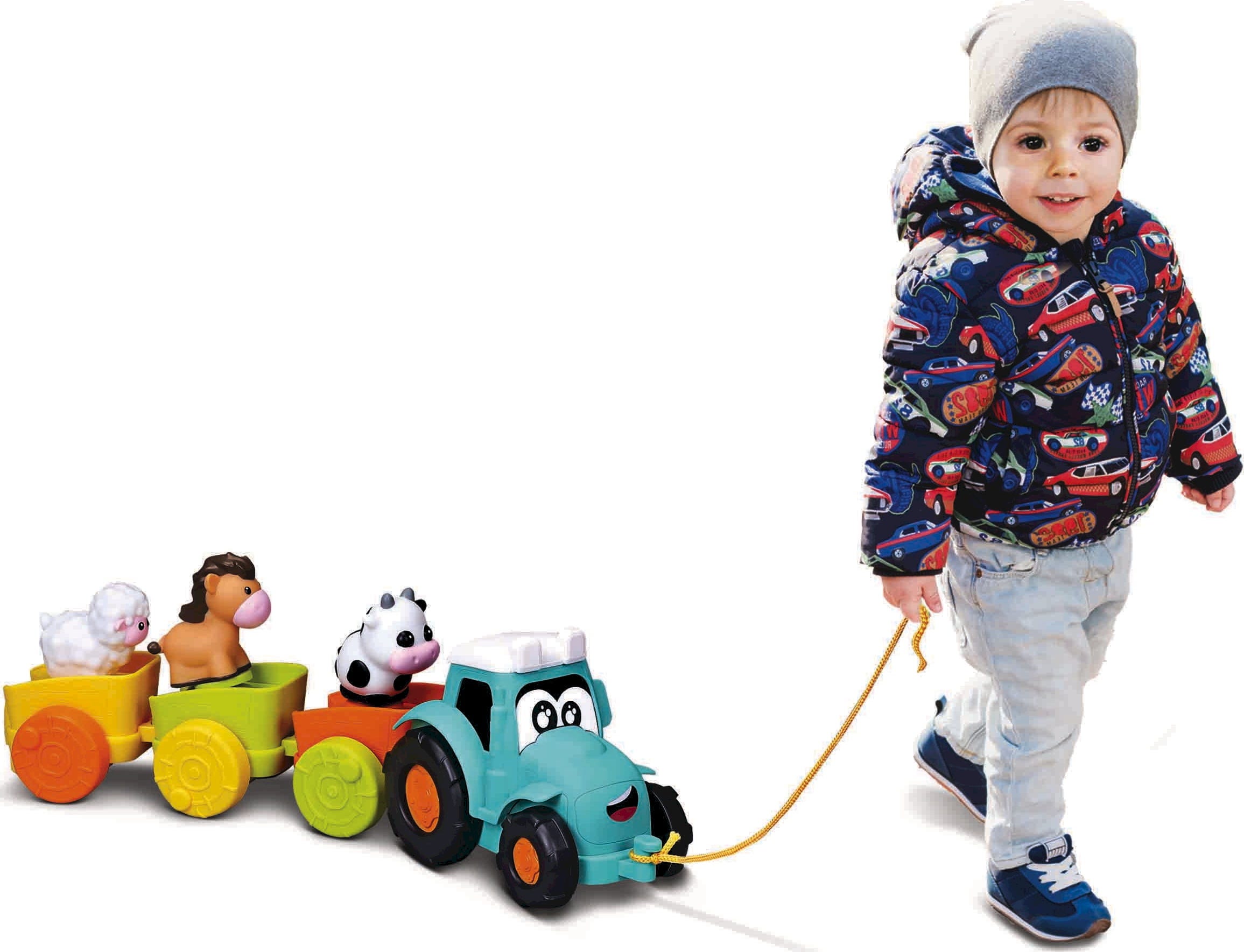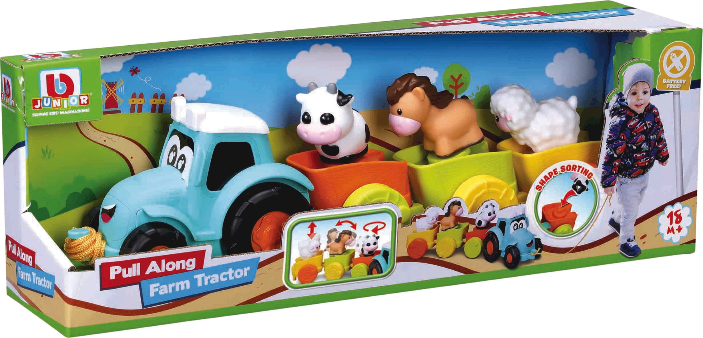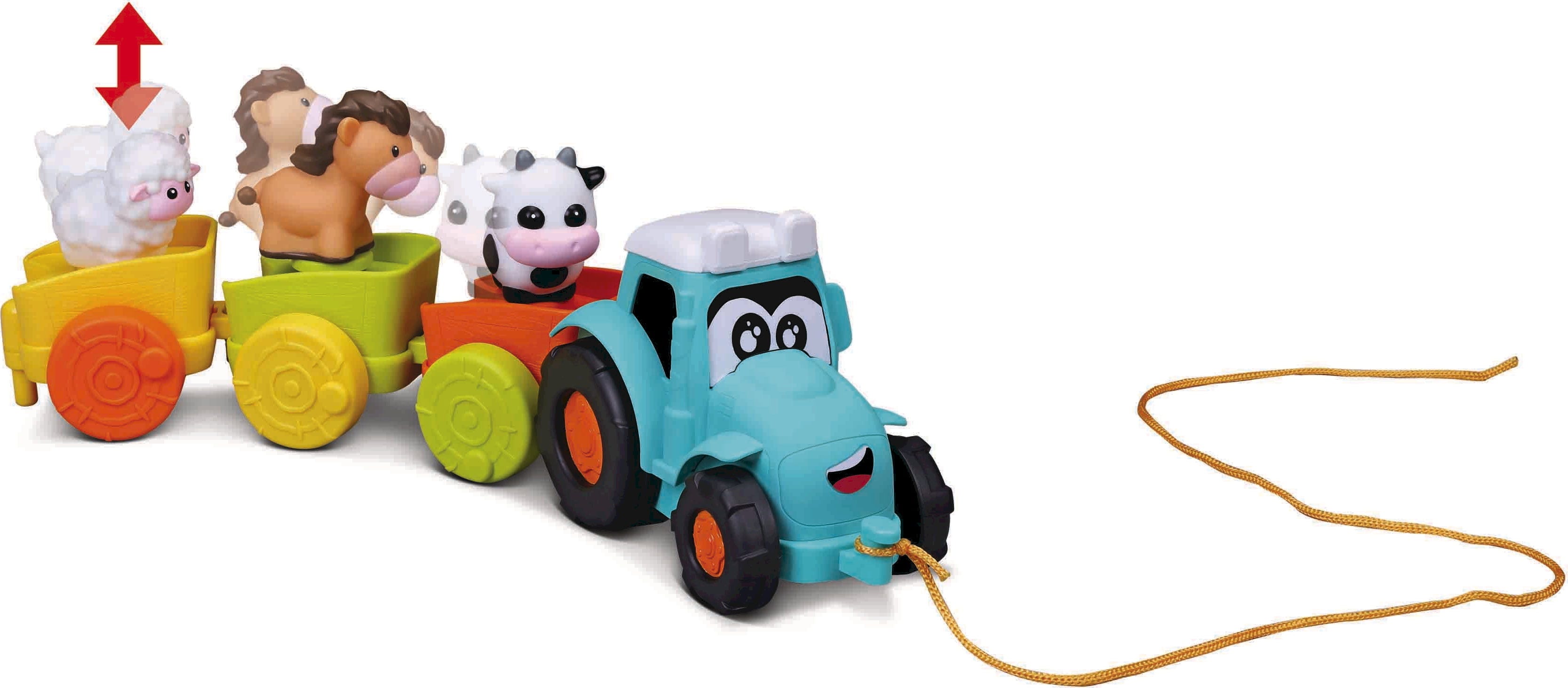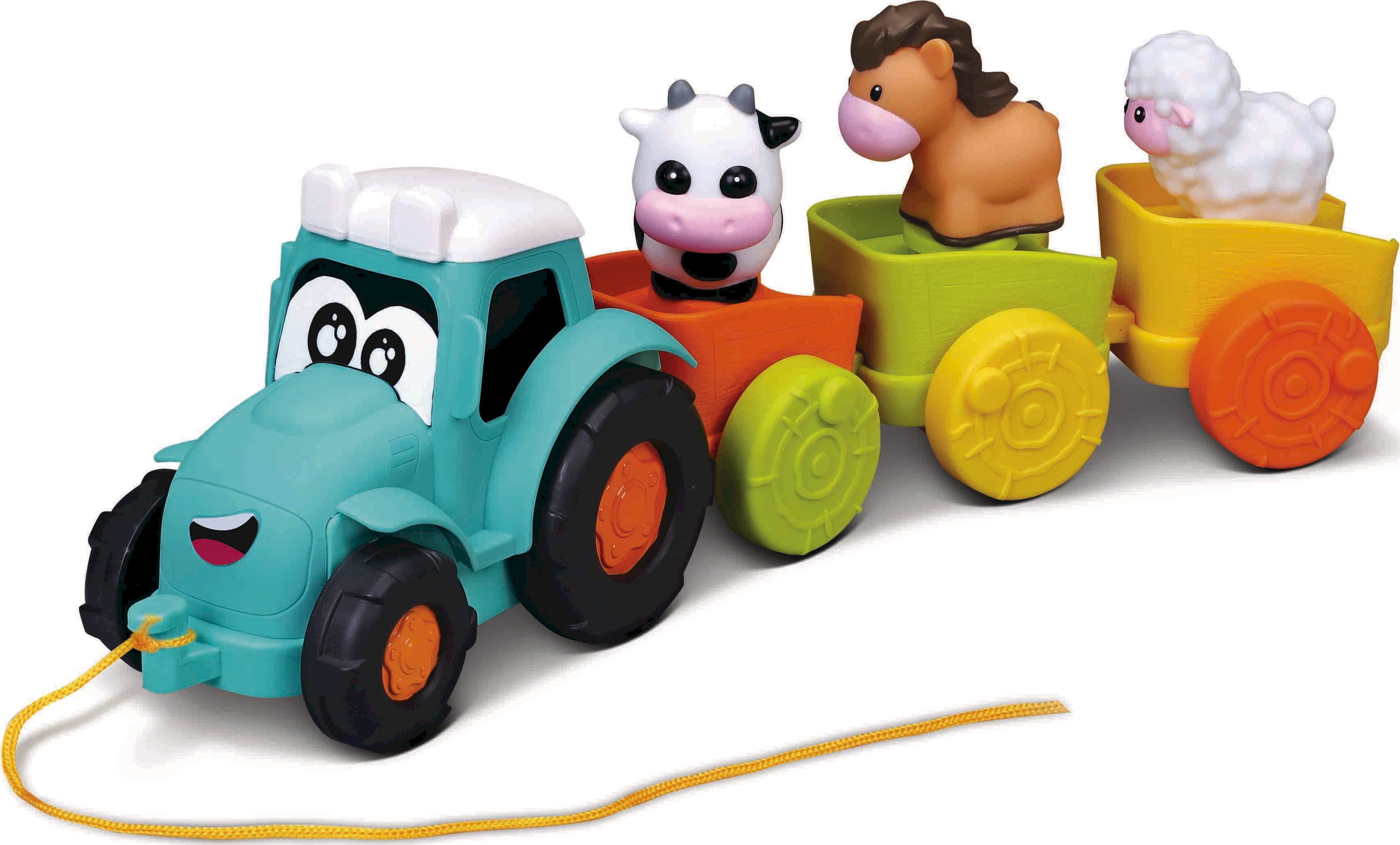 BBJunior Pull Along Farm Traktor mit 3 Anhängern und Tierfiguren