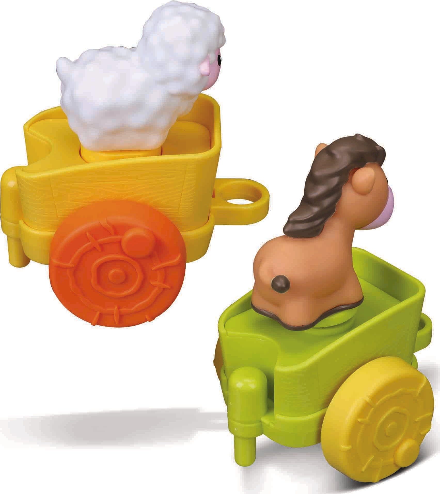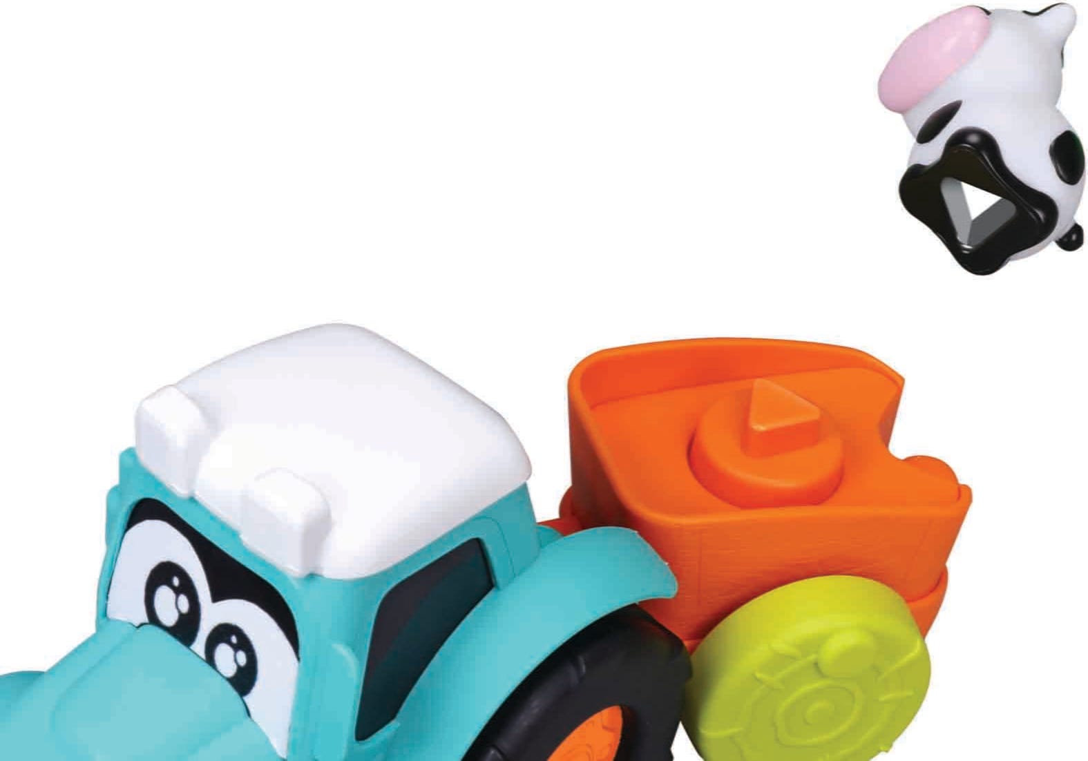 Der Clou: Während der Fahrt bewegen sich die niedlichen Bauernhoftiere auf den Wagen und machen deine Tour lebendig. Hier ist dein Geschick beim An- und Abkoppeln der Anhänger voll gefragt, da du sie beliebig miteinander kombinieren kannst. Das Set lädt dich dazu ein, deine ersten Schritte zu festigen und schult ganz spielerisch deinen Umgang mit Formen und Bewegungen. Ein toller Begleiter für kleine Nachwuchslandwirt:innen, der komplett ohne Batterien auskommt und perfekt in kleine Kinderhände passt!