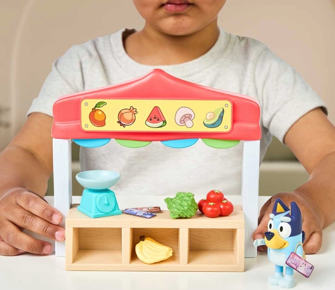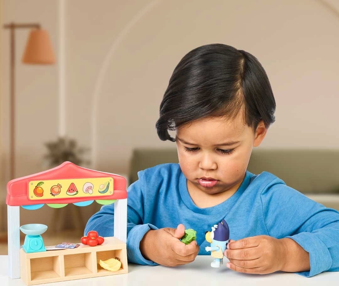 Das Set ist perfekt auf die motorischen Fähigkeiten von Vorschulkindern zugeschnitten und fördert durch Rollenspiele die Fantasie. Dank der Kompatibilität mit anderen Bluey-Figuren lässt sich der Marktbesuch beliebig erweitern. Ein bunter Stickerbogen sorgt zudem für individuellen Gestaltungsspaß beim Aufbau.