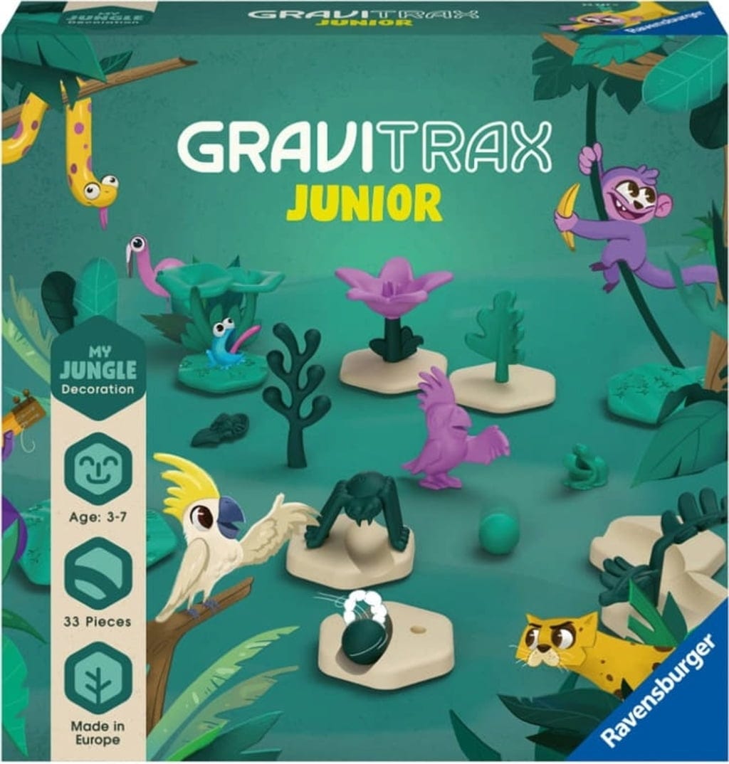 Möchtest du die Kugelbahnwelt deines Kindes in eine lebendige Wildnis verwandeln? Die GraviTrax Junior Extension Jungle ist die ideale Ergänzung, um bestehende Starter-Sets spielerisch zu vergrößern. In dieser Themenwelt erschaffen Jungen und Mädchen ihre eigenen Dschungel-Szenarien, in denen Bau- und Spielspaß perfekt miteinander verschmelzen.