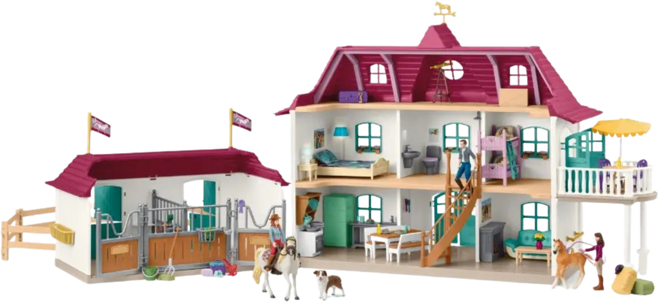 Im Lakeside Country House erleben Hannah und ihre Familie spannende Tage mit ihren Pferden. Vom Apfelkuchen in der Küche bis zum Training der Araber Stute – jede Ecke steckt voller Abenteuer. Das detailreiche Set lädt zum fantasievollen Spielen ein und bietet viele Überraschungen, wie den geheimnisvollen goldenen Schlüssel auf dem Dachboden. Perfekt für kleine Pferdefans, die Geschichten selbst gestalten wollen!