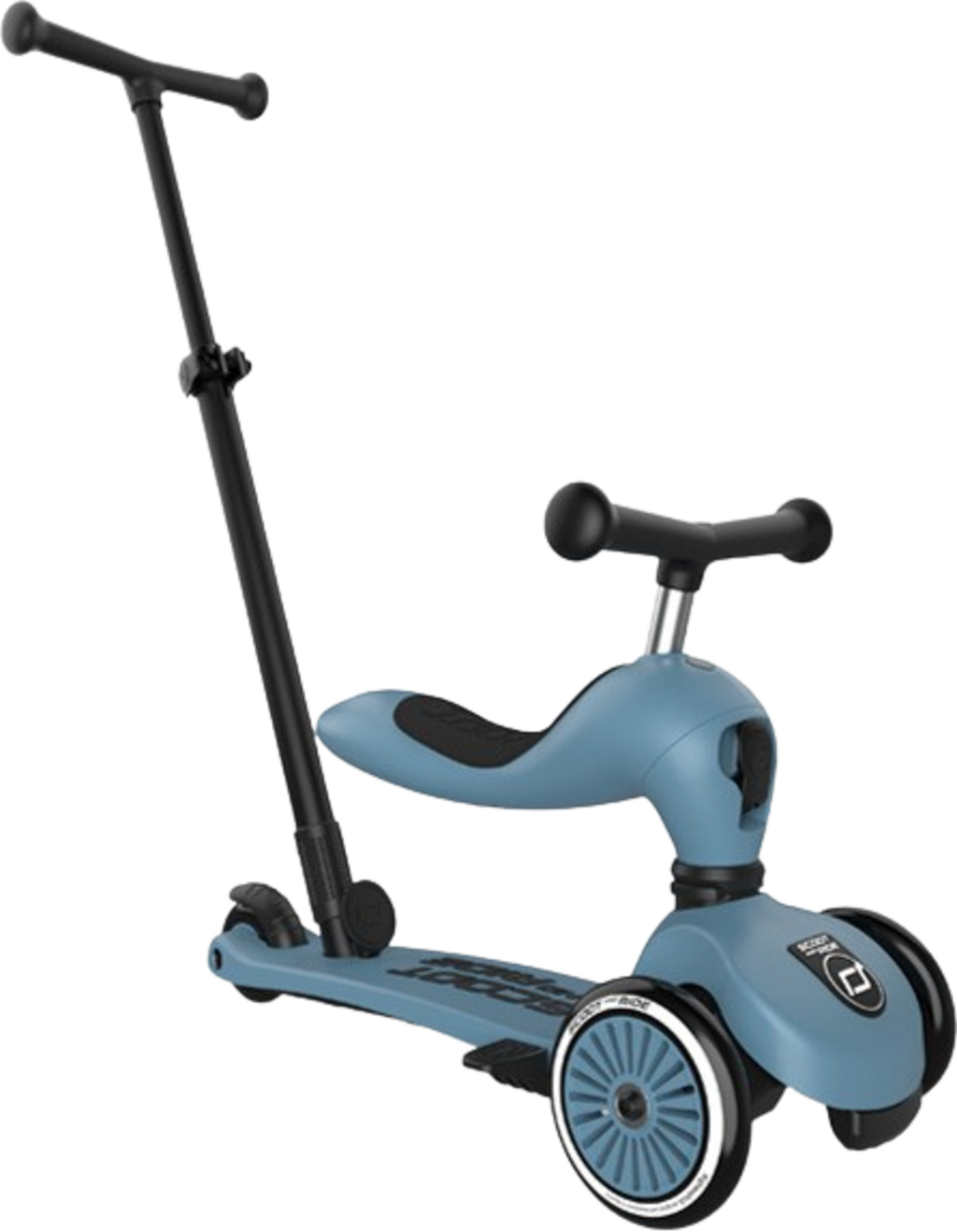 Auch ohne Schiebestange bleibt der Scooter ein treuer Begleiter – er wächst dank des höhenverstellbaren Sitzes mit und bietet über Jahre hinweg Spaß und Sicherheit beim Fahren.
