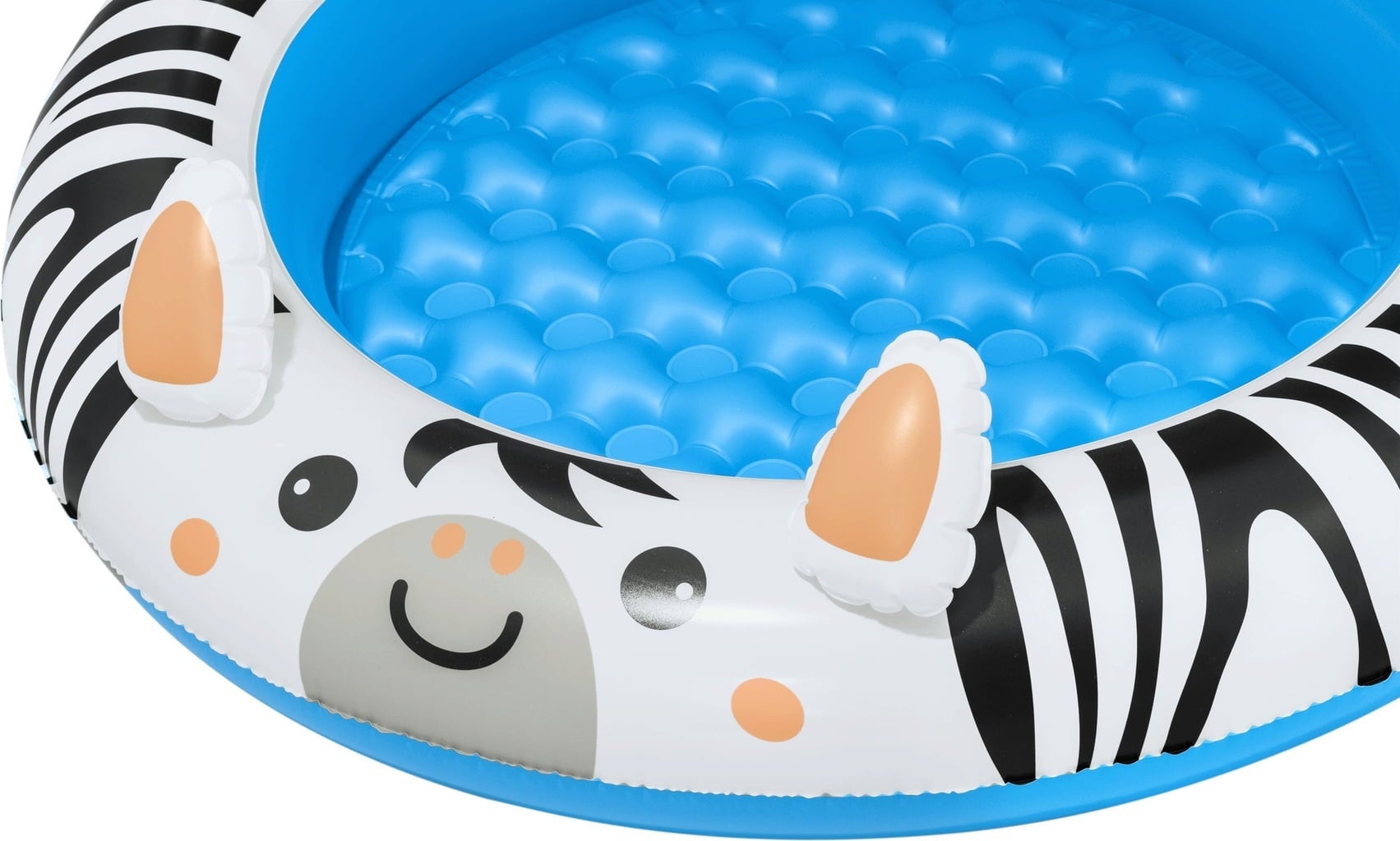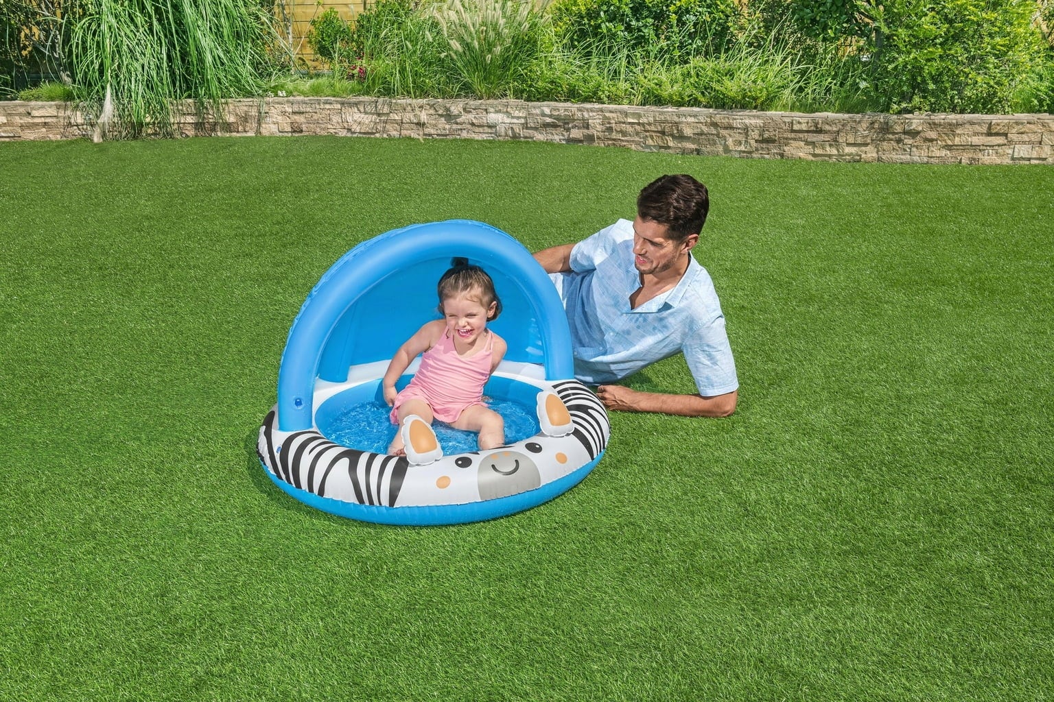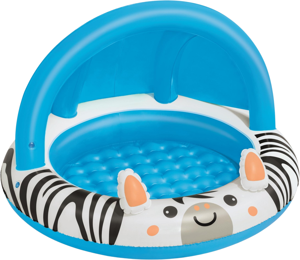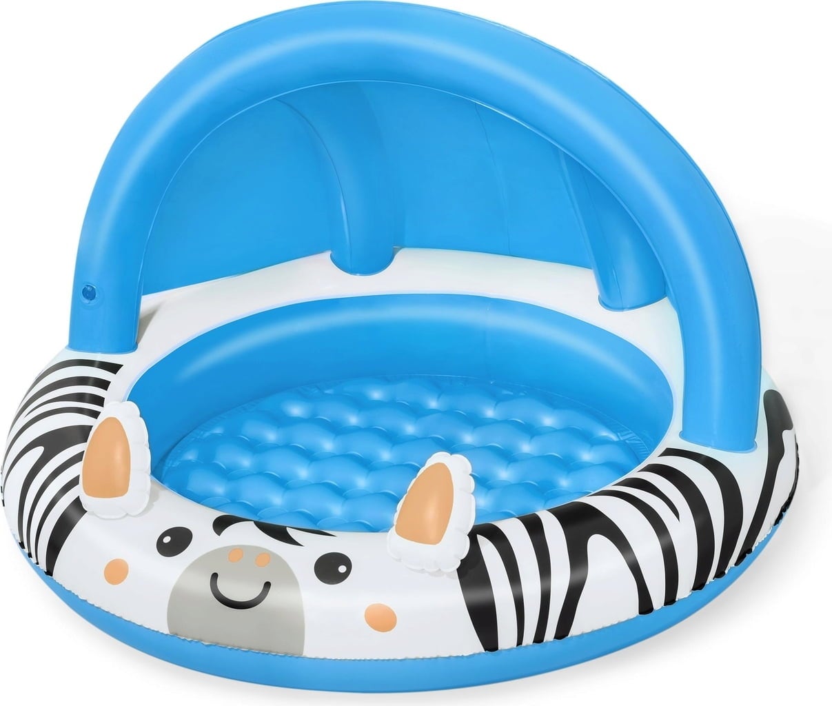 Avec la piscine gonflable Safari Sun de Bestway, les petits explorateurs et exploratrices dès l’âge de deux ans peuvent vivre leurs premières aventures aquatiques ! Son design joyeux en forme de zèbre met instantanément de bonne humeur, tandis que le toit pare-soleil gonflable UV-Careful™ offre une ombre agréable.