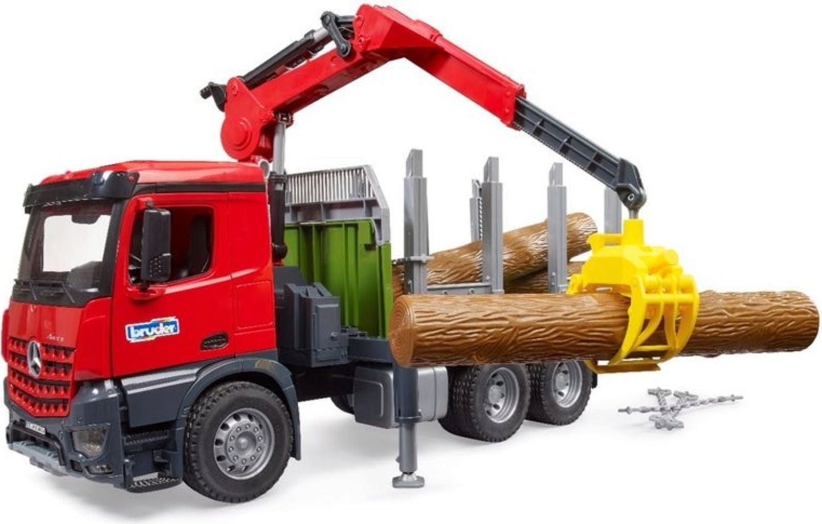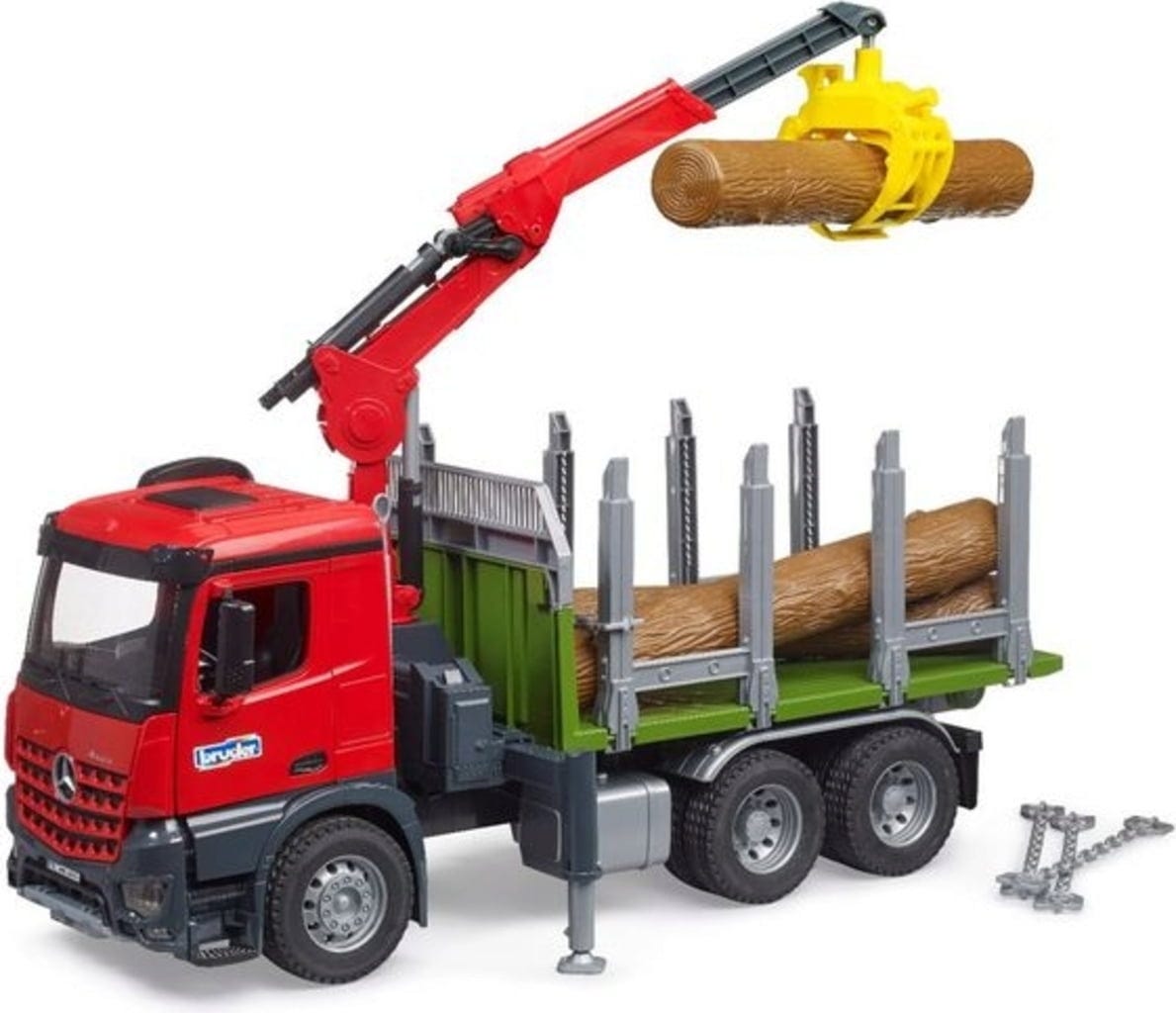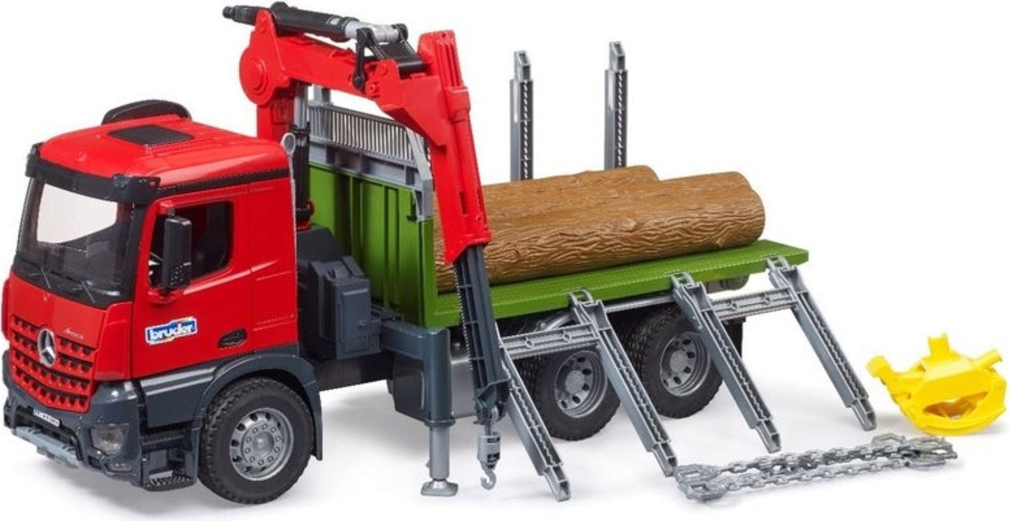 Bruder Camion de transport de bois MB Arocs avec grue de chargement, pince et 3 troncs d'arbres