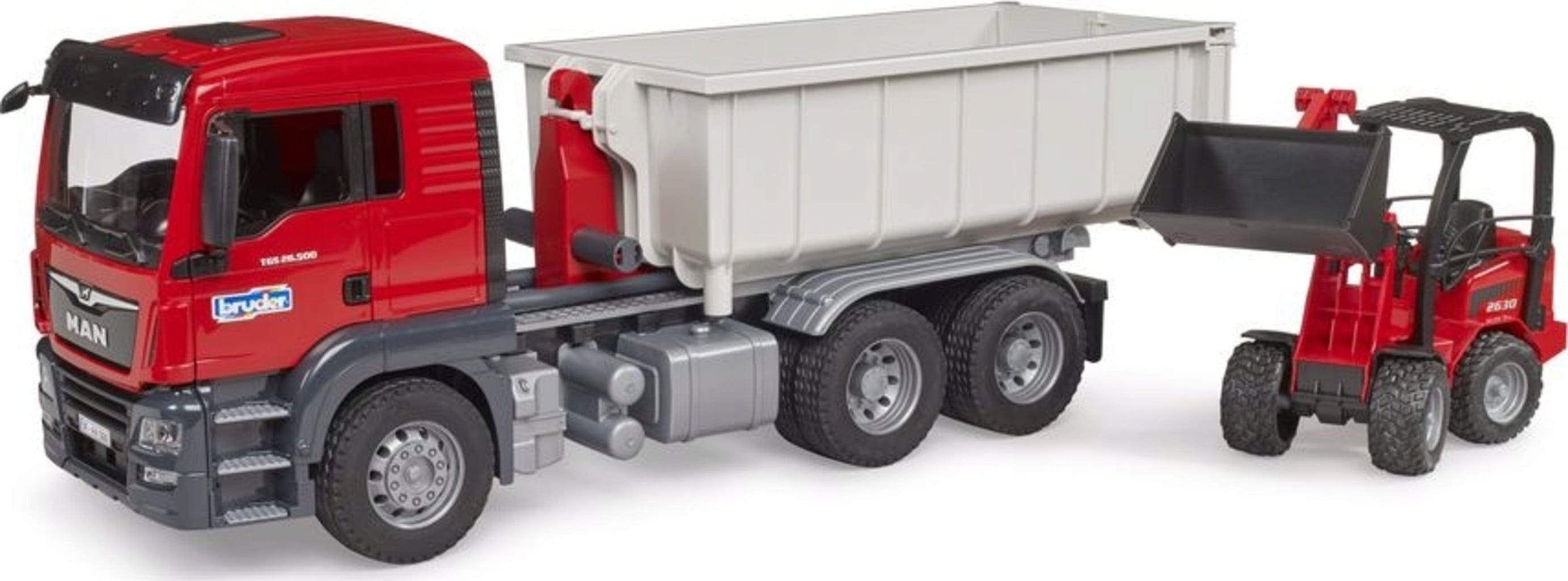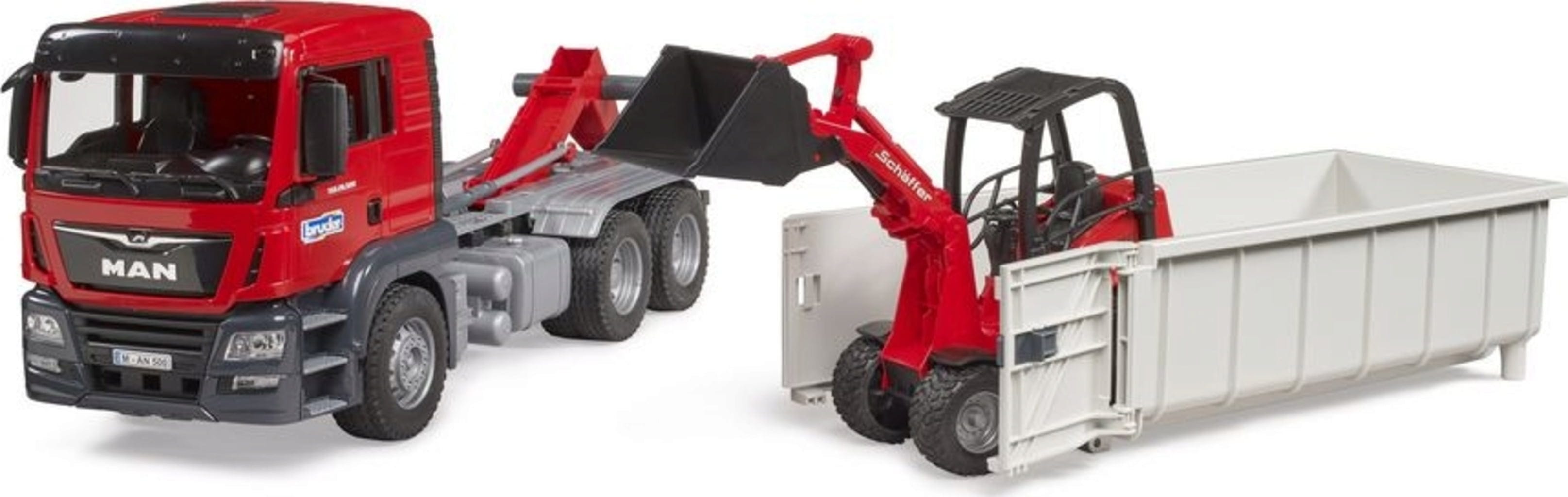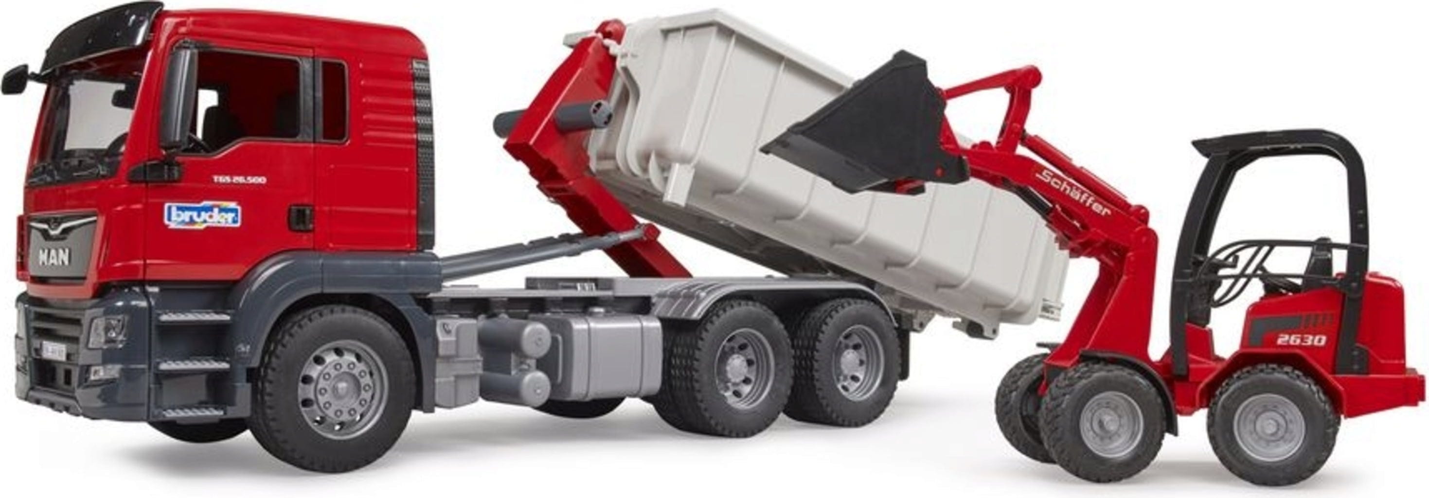 Bruder Camion MAN TGS avec conteneur amovible et chargeuse sur pneus Schäffer 2630