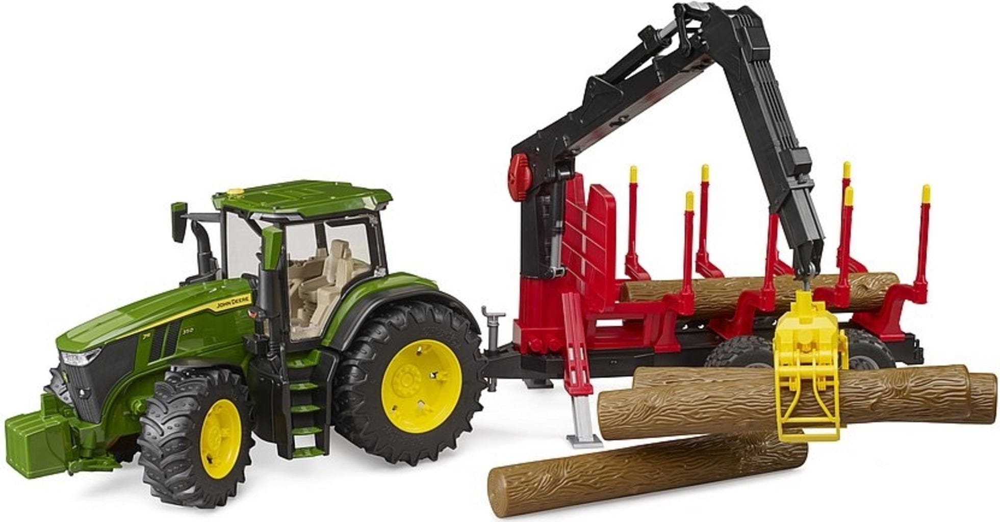 Bruder John Deere 7R 350 avec remorque forestière et 4 troncs d'arbres