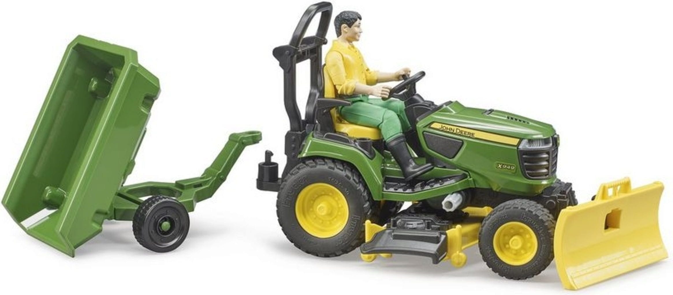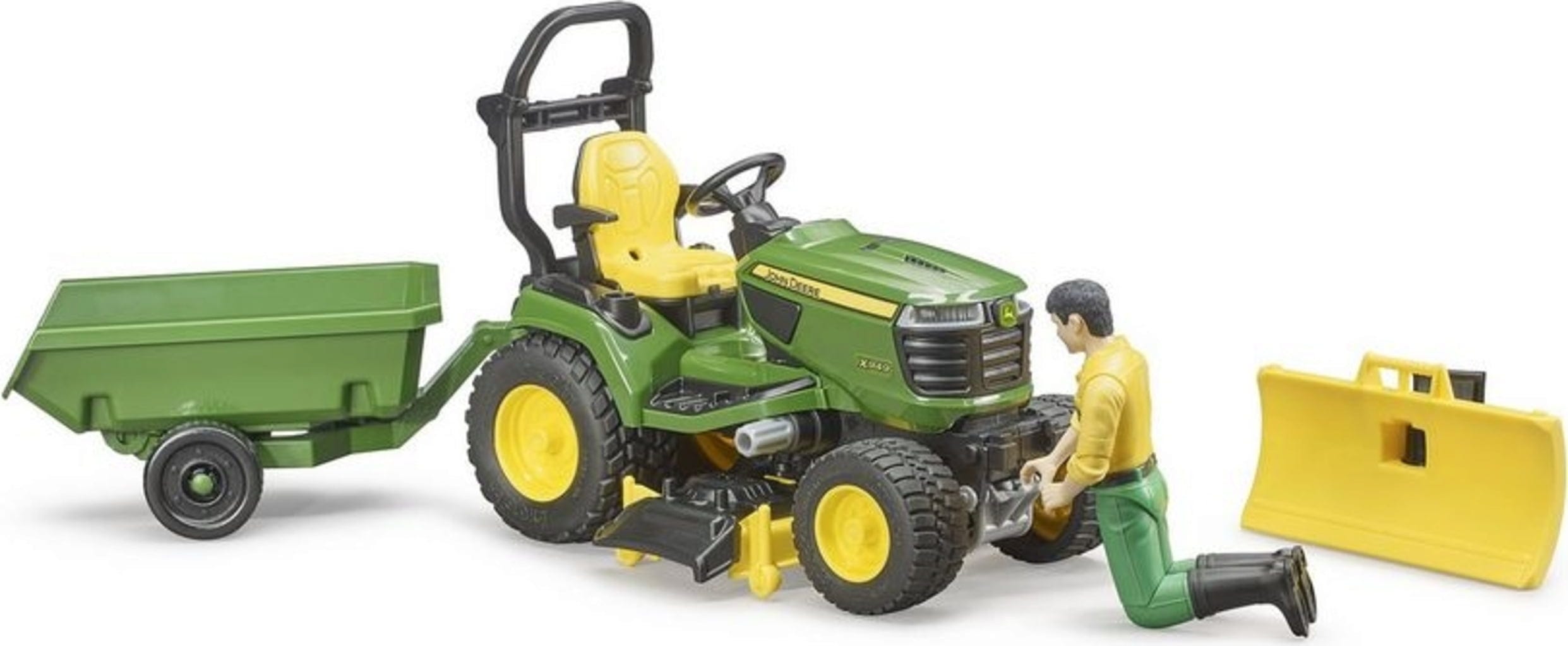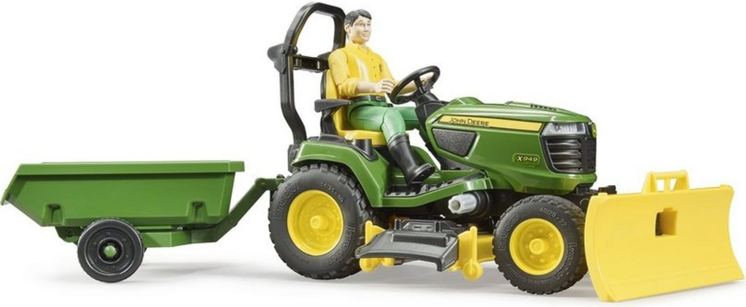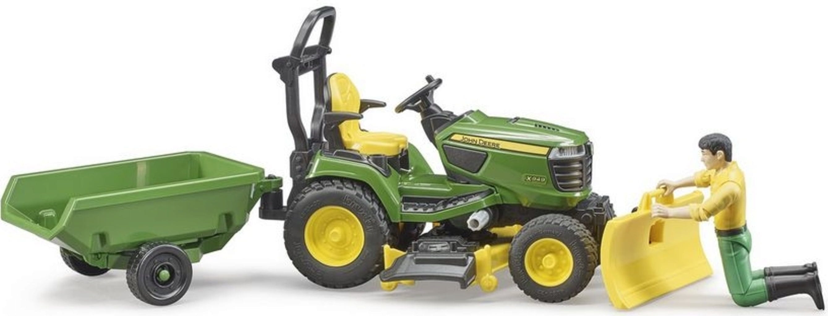 Bruder Tracteur de pelouse John Deere bworld avec remorque et jardinier