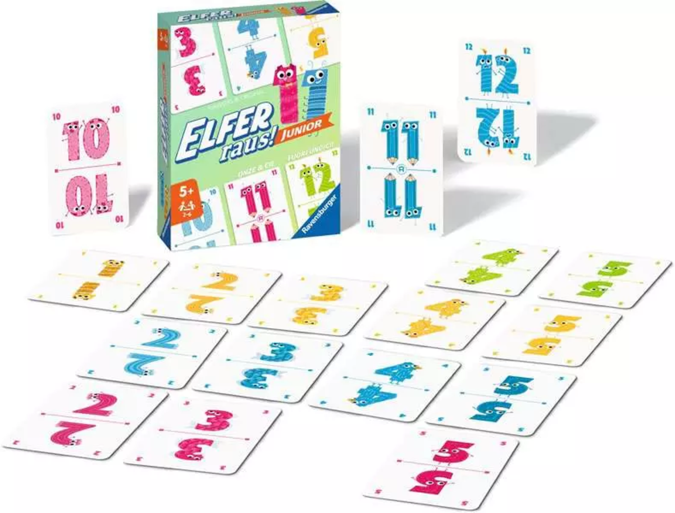 Elfer Raus est un classique familial très apprécié, qui séduit désormais aussi les enfants à partir de 5 ans grâce à son nouveau design. Grâce à des règles de jeu simples, le plaisir peut commencer immédiatement. Les cartes numérotées aux illustrations amusantes aident à explorer l'univers des chiffres de 1 à 20 de manière ludique.