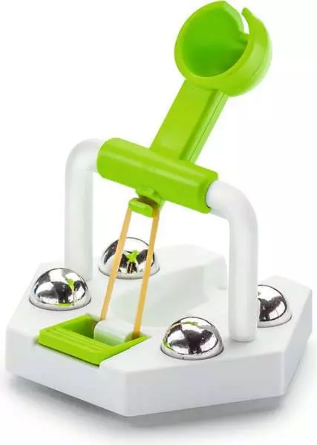 Le principe est aussi simple que génial : dès qu'une bille roule dans le catapulte, elle déclenche un mécanisme à levier. Le bras de lancement s'élance à la vitesse de l'éclair et propulse la bille avec une force considérable au-dessus du circuit. Vos enfants pourront expérimenter la meilleure façon de placer le catapulte pour survoler habilement les obstacles. Cela permettra d'affiner de manière ludique leur compréhension des forces physiques et du transfert d'énergie.