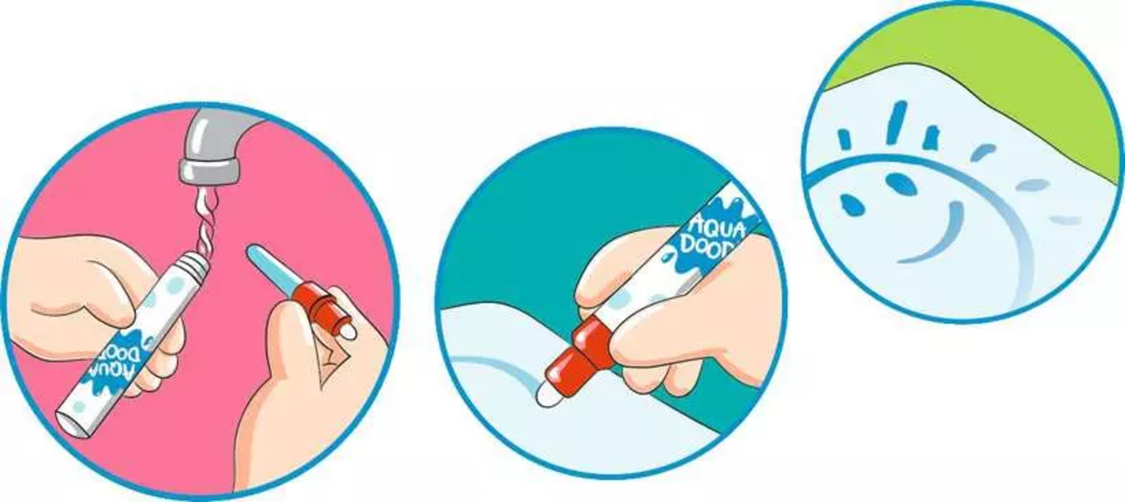 Sur ce tapis magique, les enfants peuvent gribouiller et dessiner à leur guise. Le stylo à eau spécial colore la surface en bleu. Après séchage, toutes les traces disparaissent. Le tapis est alors prêt pour une nouvelle œuvre d'art.