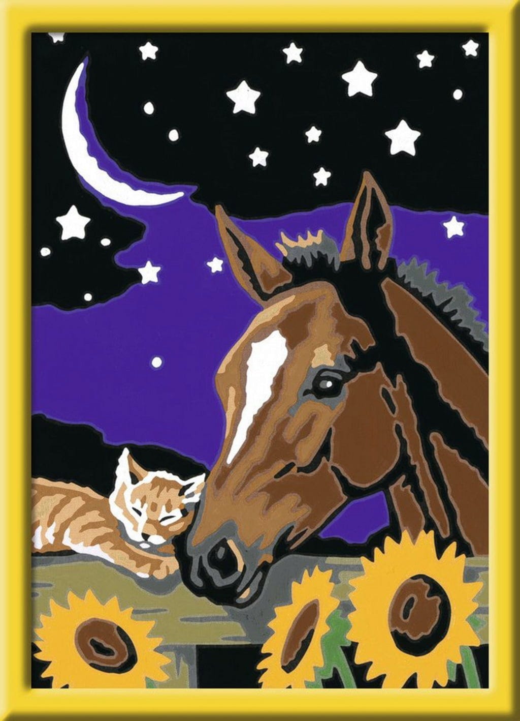 Ce mignon cheval et son amie la chatte ont hâte d'être peints par un petit artiste. Les cases numérotées, entourées de lignes colorées, apportent une aide précieuse. Étape par étape, une magnifique œuvre d'art est créée, qui apportera de la joie pendant longtemps.