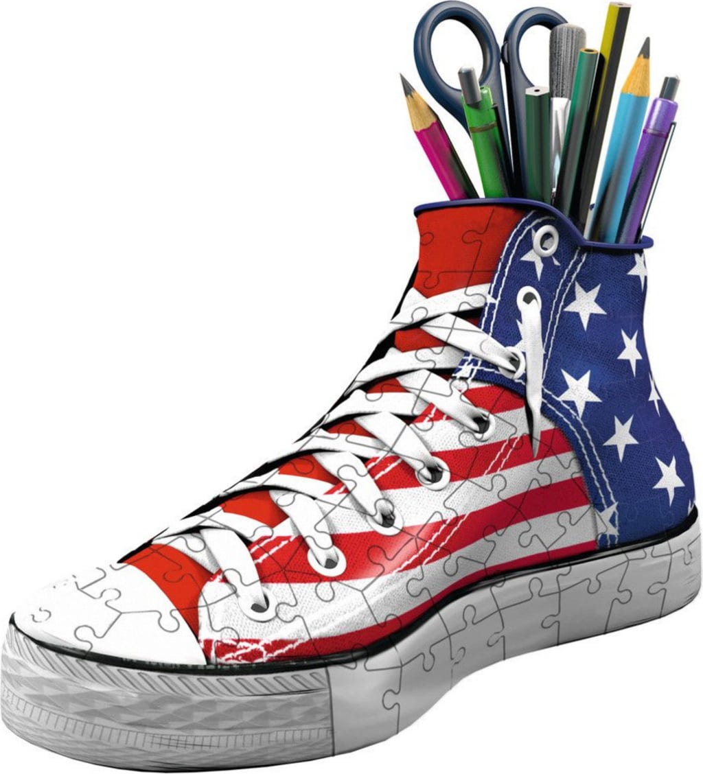 Avec ce génial puzzle 3D, les fans des États-Unis peuvent assembler leur propre sneaker. Pour cela, les 108 pièces de puzzle en plastique s'assemblent facilement sans utiliser de colle. Grâce à la technologie Easy-Click, les pièces s'emboîtent parfaitement et créent ainsi une sneaker tendance avec le drapeau des États-Unis, qui attirera tous les regards.