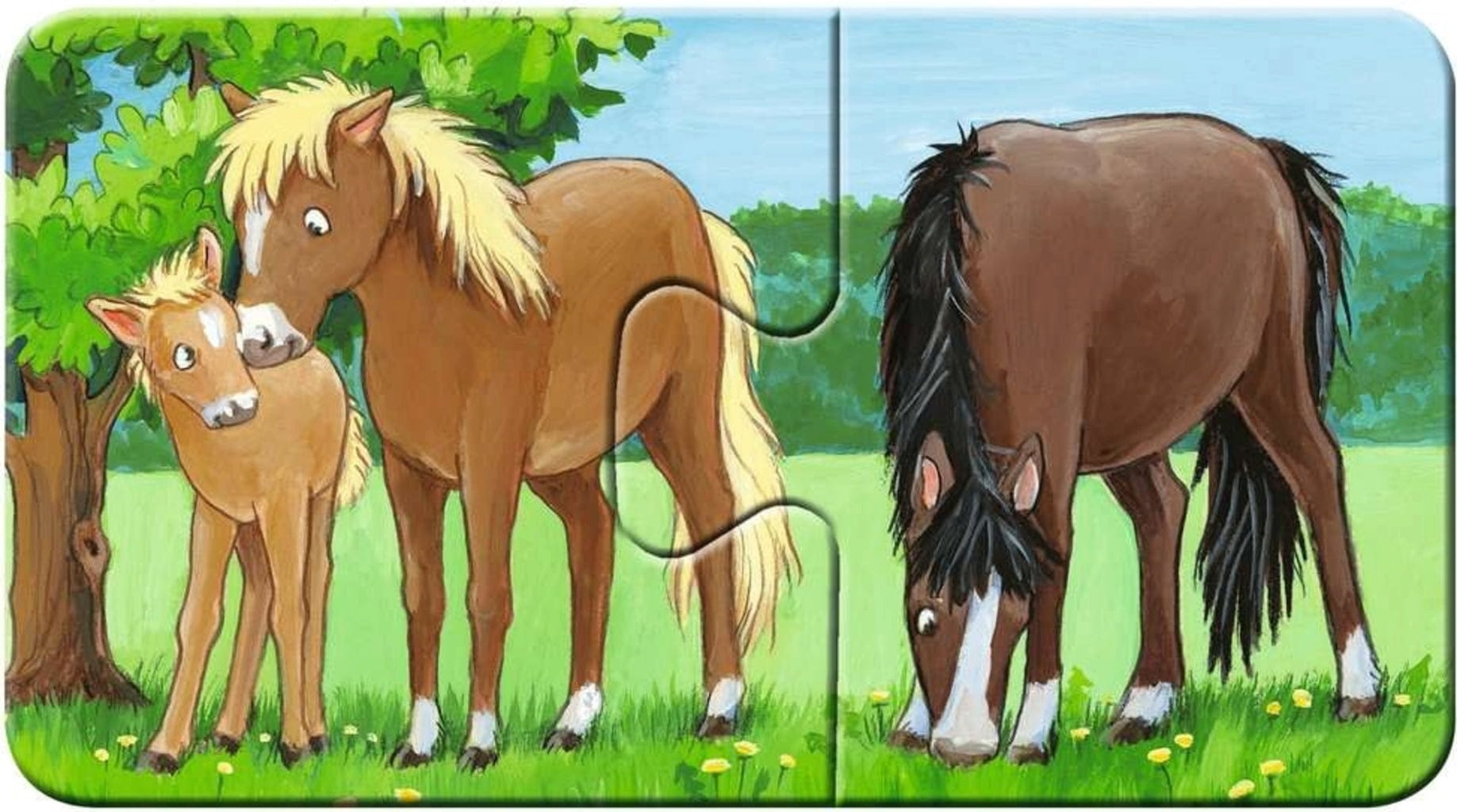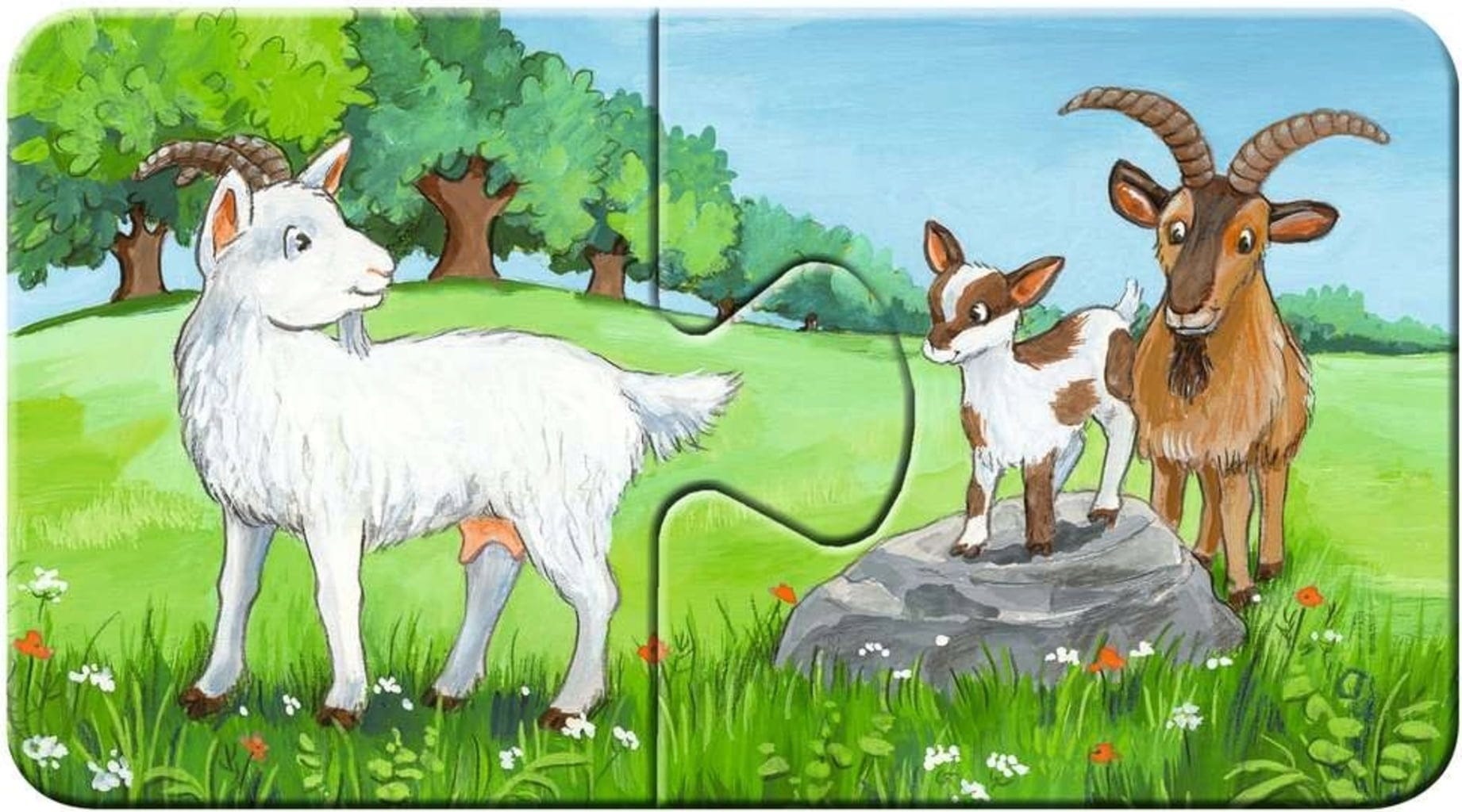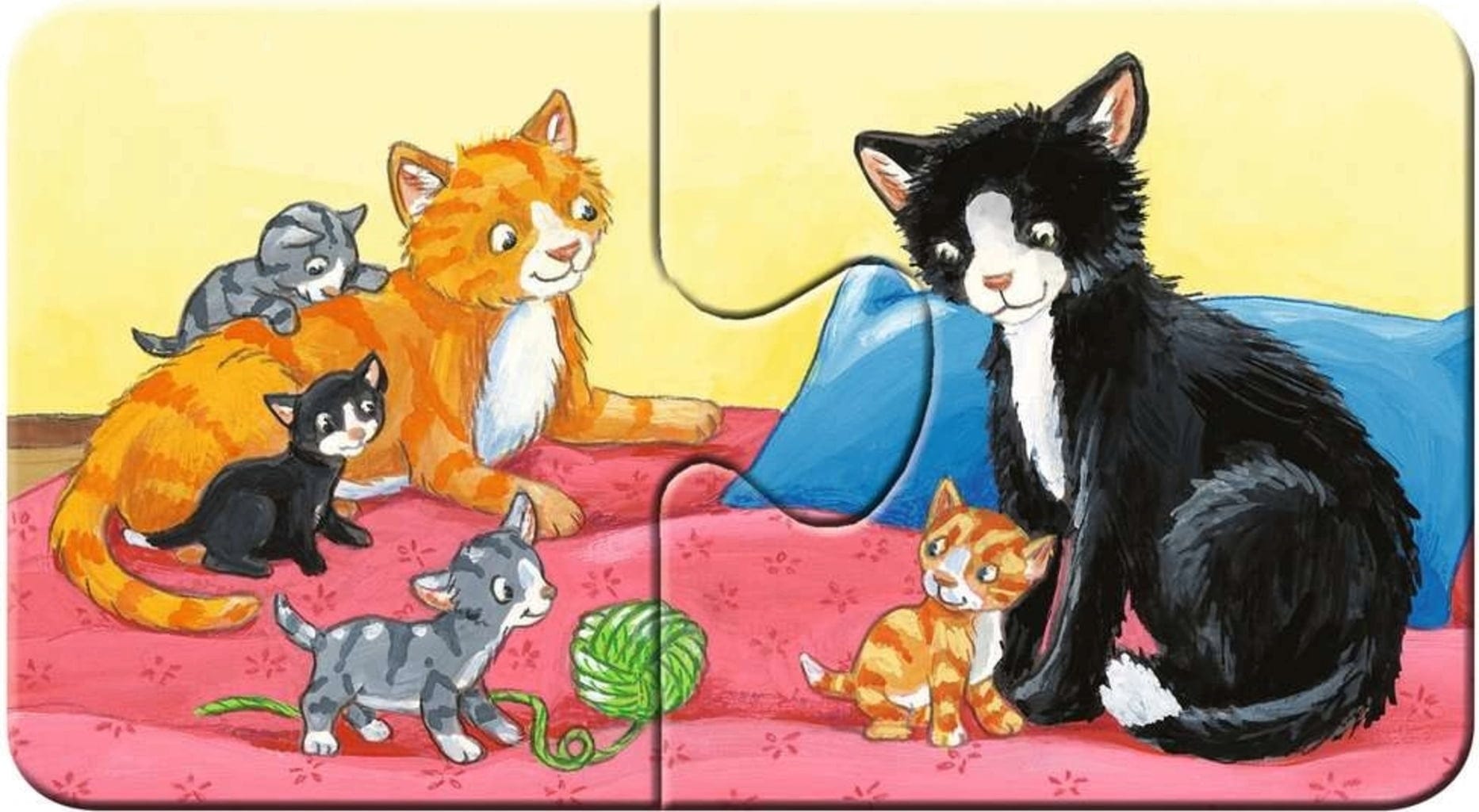 Un puzzle amusant pour les tout-petits. Quels animaux vont ensemble ? Neuf puzzles de deux pièces avec des motifs adorables favorisent de manière ludique la coordination œil-main. Les pièces individuelles en carton épais sont presque indestructibles. Le niveau de difficulté peut être déterminé en donnant plus ou moins de pièces à la fois.