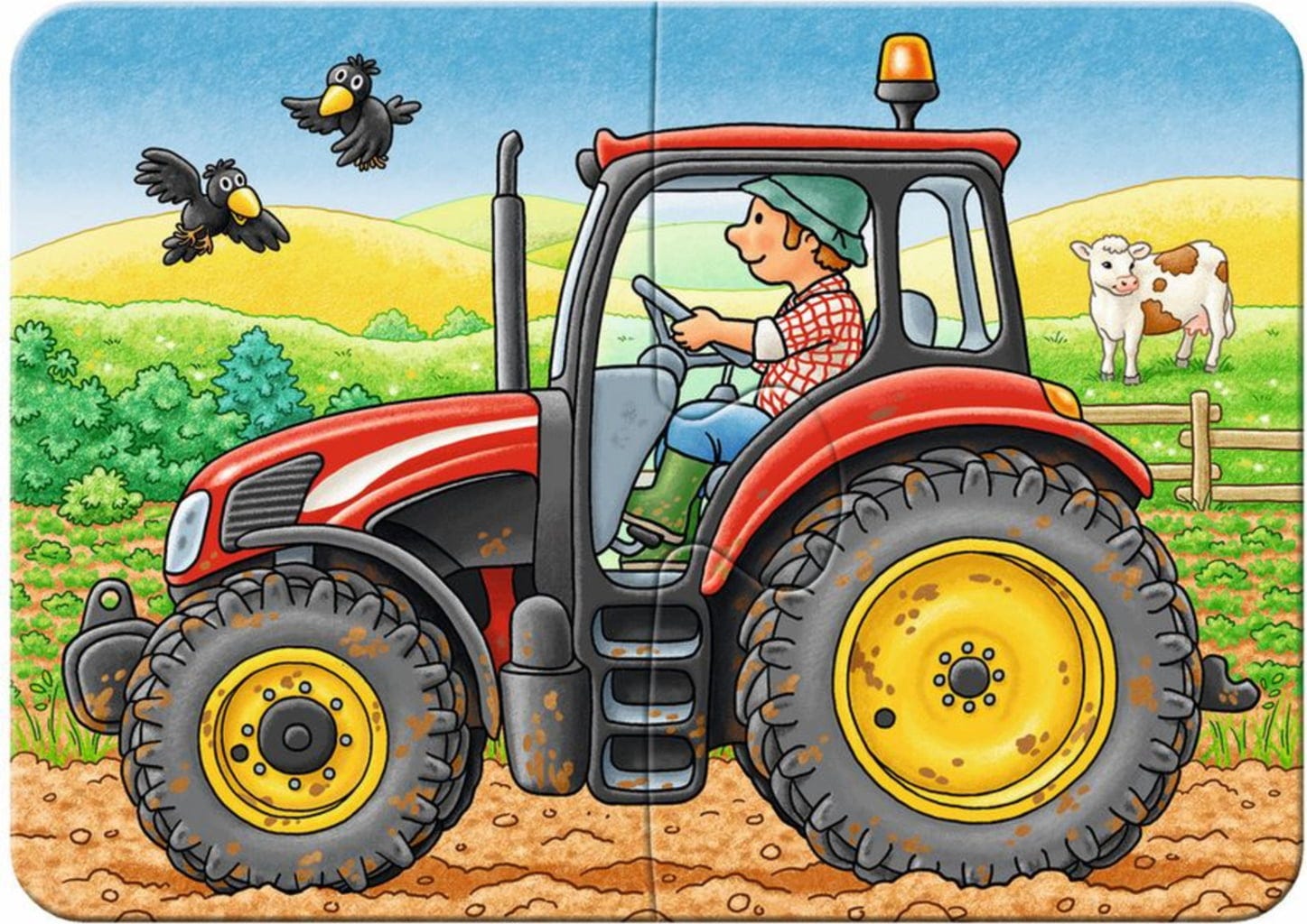 Ce vaste ensemble contient quatre superbes puzzles sur lesquels il y a beaucoup à découvrir. Outre un tracteur, un camion de pompiers et une locomotive, il y a aussi une impressionnante pelleteuse qui effectue son travail sérieusement.