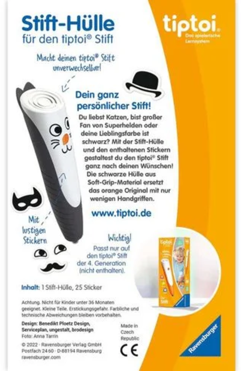 Embellissez votre stylo tiptoi de 4ème génération avec des autocollants originaux qui s'accordent parfaitement avec la housse noire et sobre. Soyez à la pointe de la mode et vivez encore plus de moments de plaisir avec tiptoi.