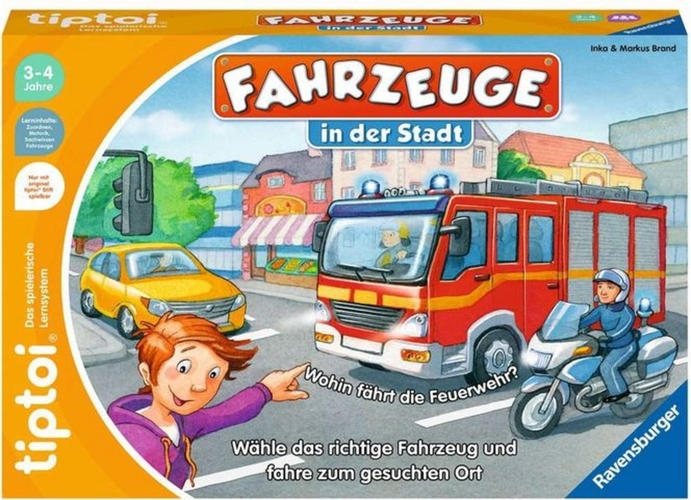 Écoute attentivement lorsque le stylo tiptoi te donne une nouvelle mission. Tu devras alors choisir le véhicule approprié et le conduire au bon endroit. Deviens rapidement le chef de la ville en commandant les interventions des pompiers, en gérant la collecte des déchets ou en approvisionnant les chantiers avec des pelleteuses et autres engins. Des musiques et des sons supplémentaires rendent ce jeu éducatif particulièrement amusant.