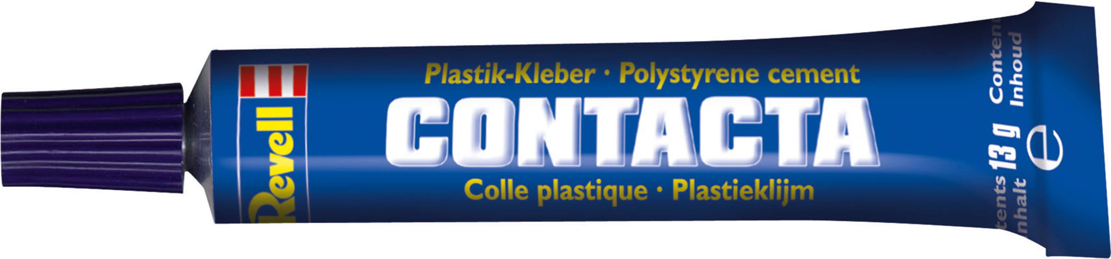 Le Revell Contacta en tube a une texture gélatineuse. Elle permet ainsi de coller et "corriger" avec précision l'alignement des pièces du modèle final, sans séchage immédiat.