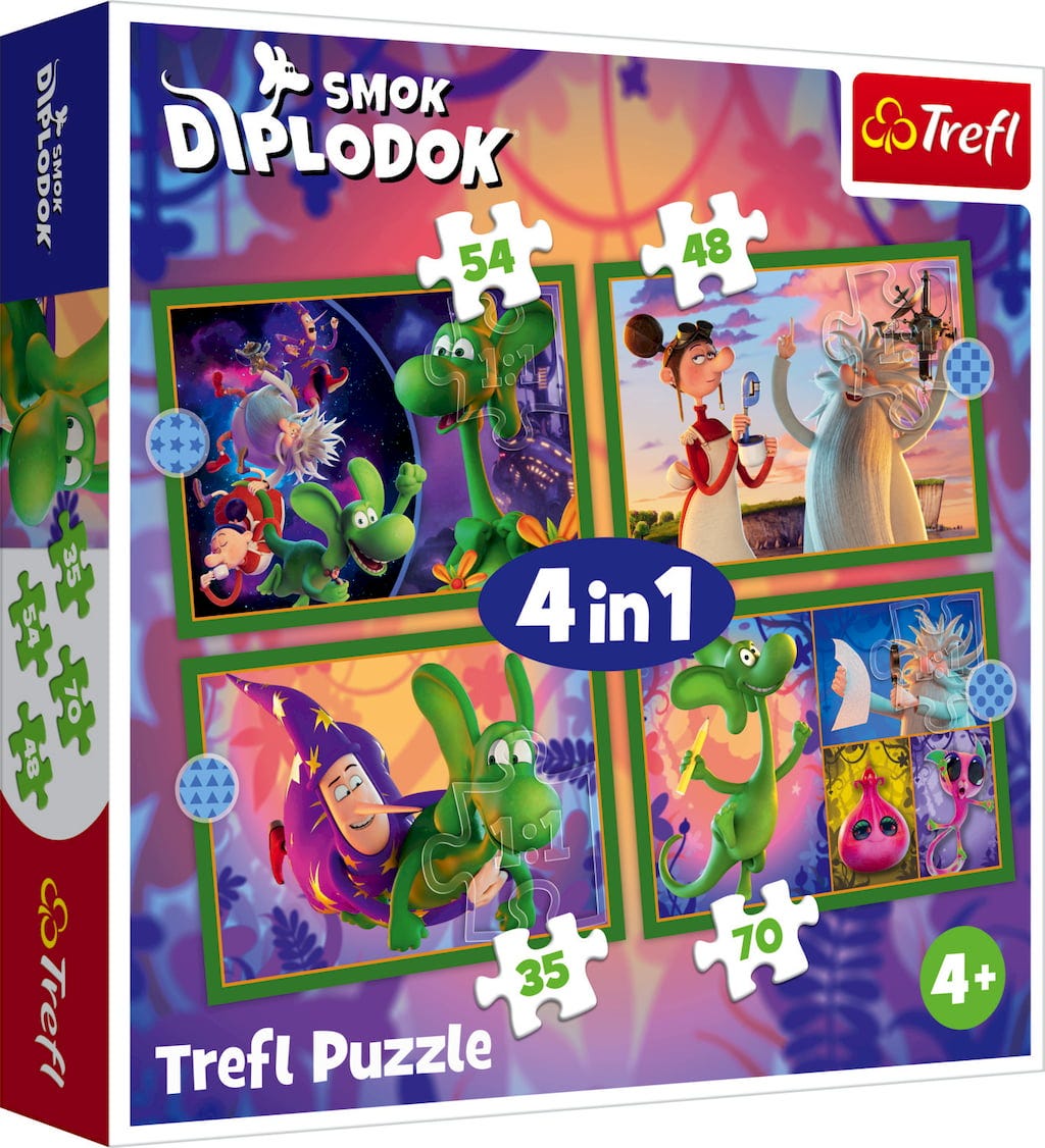 Trefl Puzzle 4 en 1 – Dilpodocus le Dragon