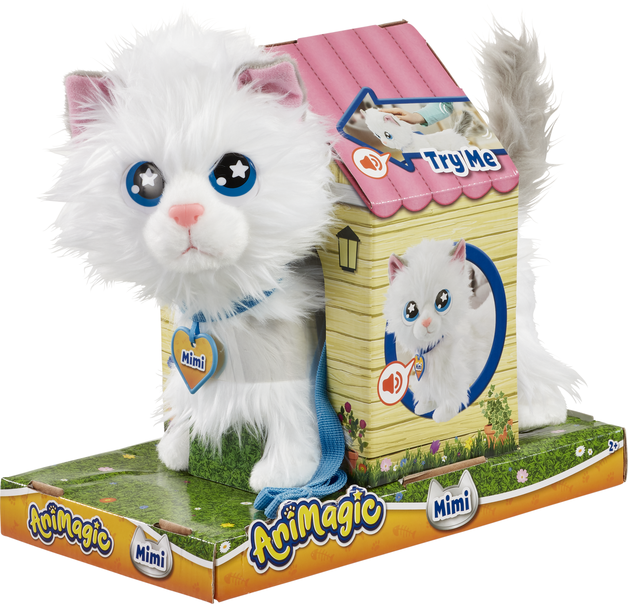 Wie miauwt daar? Het is Mimi de Kat, die heel veel knuffels wil. Ze rent naar je toe als een echt huisdier. Als je haar aait, kwispelt haar staart vrolijk heen en weer.