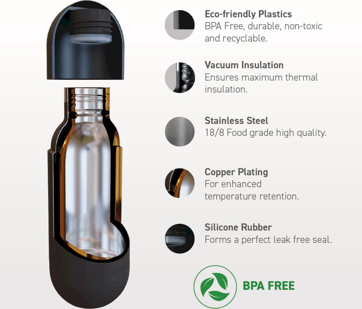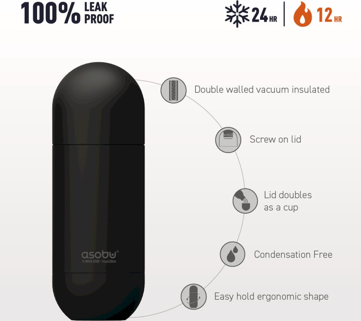 - Houdt dranken tot 12 uur warm of 24 uur koel