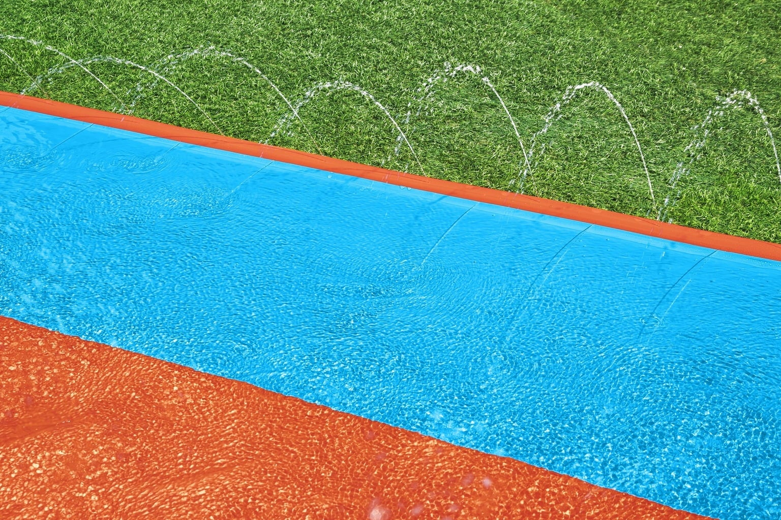 Maar dat is nog niet alles. De innovatieve SplashBoost™ sproeitechnologie wordt rechtstreeks op de tuinslang aangesloten en garandeert een gelijkmatige en effectieve besproeiing van de hele glijbaan.Je blijft niet hangen - gewoon puur glijplezier. En aan het einde? Daar wacht een klein landingsbad op je - maak van je tuin het middelpunt van de zomer!