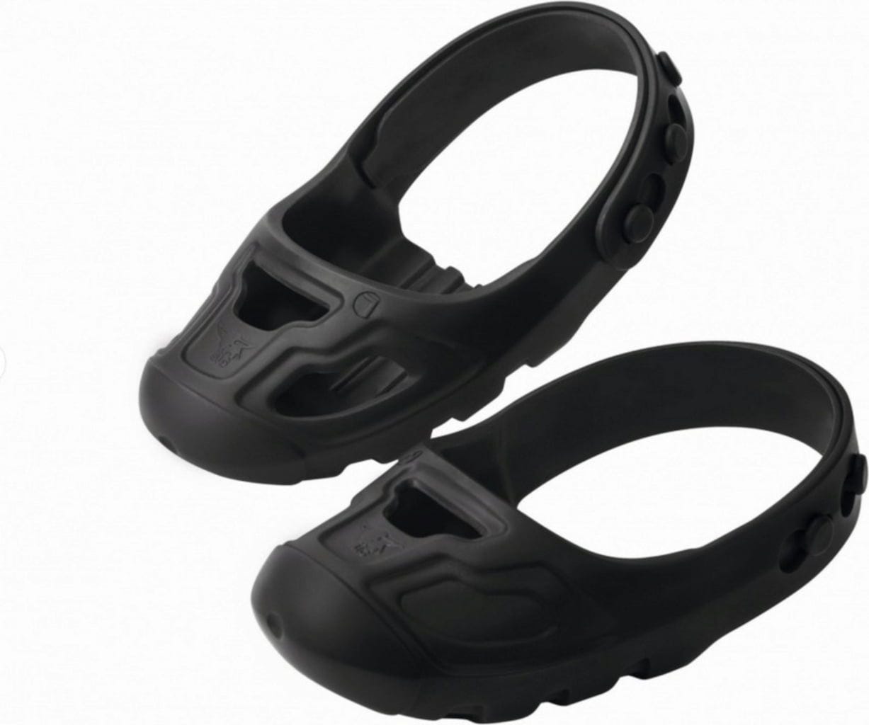 Vooral tijdens snelle ritjes op een harde ondergrond of bij krachtige remmanoeuvres hebben de neuzen van kinderschoenen het zwaar te verduren. Met deze praktische schoenbeschermers van robuust kunststof worden kinderschoenen betrouwbaar beschermd tegen slijtage, zodat niets een onbezorgde rit in de weg staat.