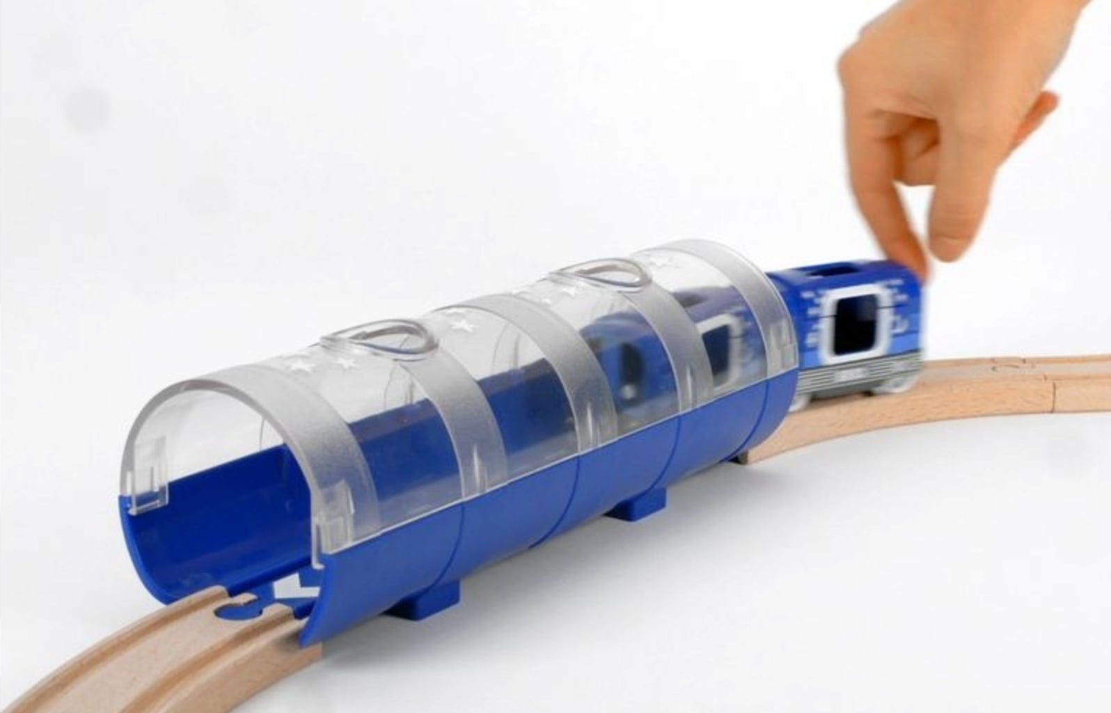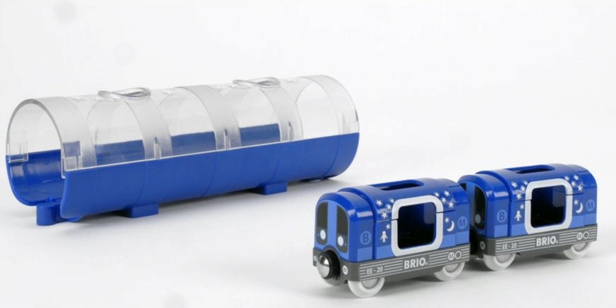 Plaats je BRIO-passagiers in de wagons en ga op reis door de tunnel. Fascinerende lichteffecten zullen de kleintjes versteld doen staan.