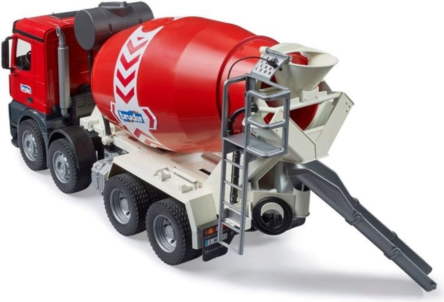 Beleef de beresterke MB Arocs betonmixer vrachtwagen als natuurgetrouw speelvoertuig. Deze imposante vierasser doet nauwelijks onder voor zijn grote voorbeeld. Met spannende functies zorgt hij voor fantastisch speelplezier in de kinderkamer en in de zandbak.