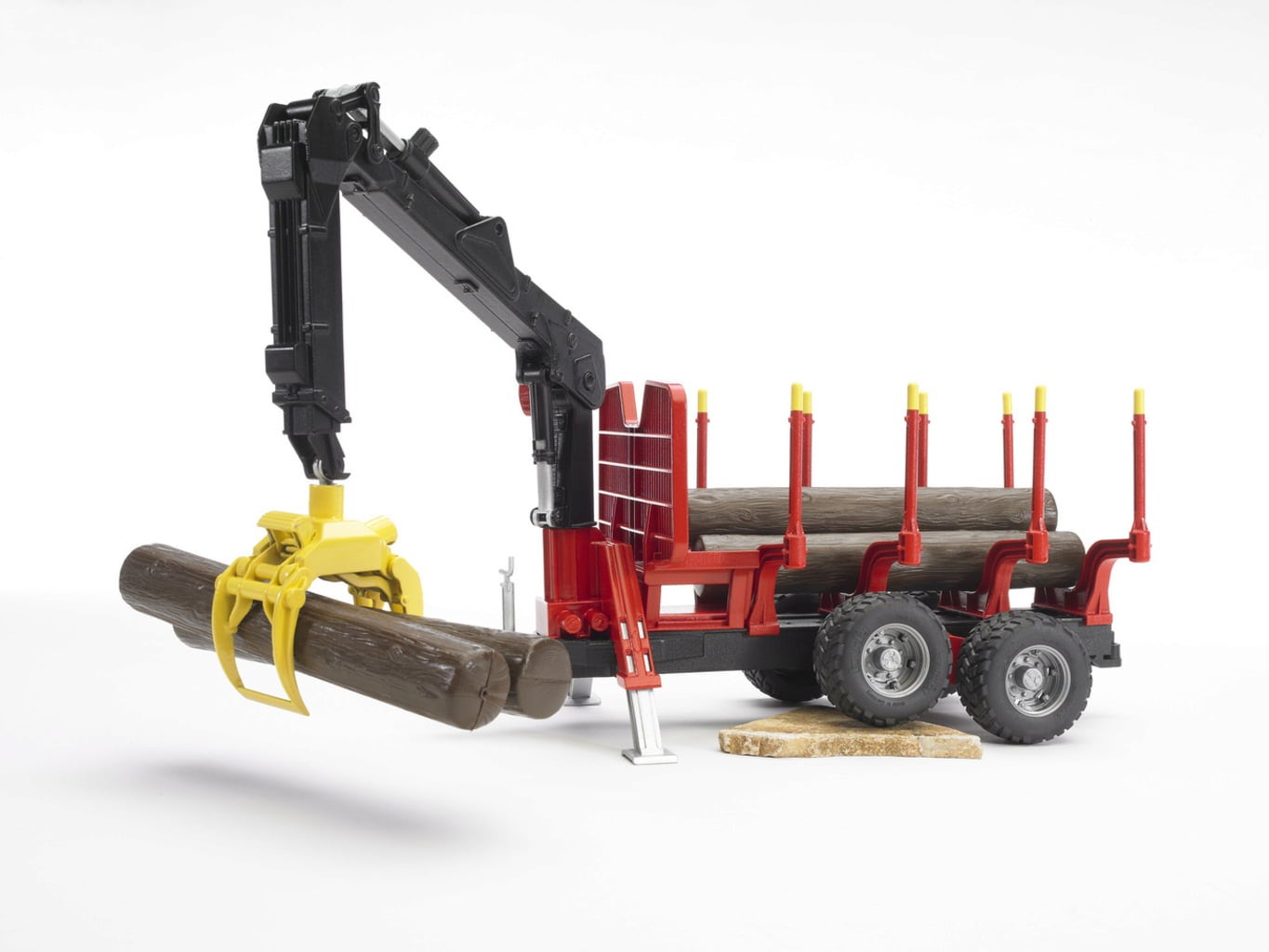 Deze transportaanhanger biedt alle bosbouwers een praktische aanvulling op andere trekkers of werkmachines. Dankzij de uitstekende details kunnen rondom werkzaamheden in het bos gevarieerde scènes worden gecreëerd - de all-terrain pendelas is ideaal voor gebruik op ruw terrein en met de draai- en zwenkbare laadkraan kunnen zelfs grote boomstammen gemakkelijk worden geladen en gelost.