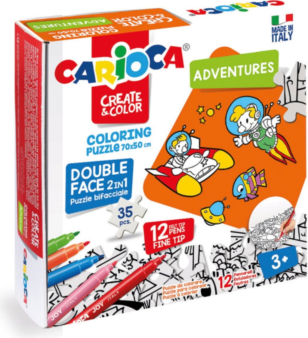 Carioca Coloring Puzzle Adventures + 12 Felt Tip Pens