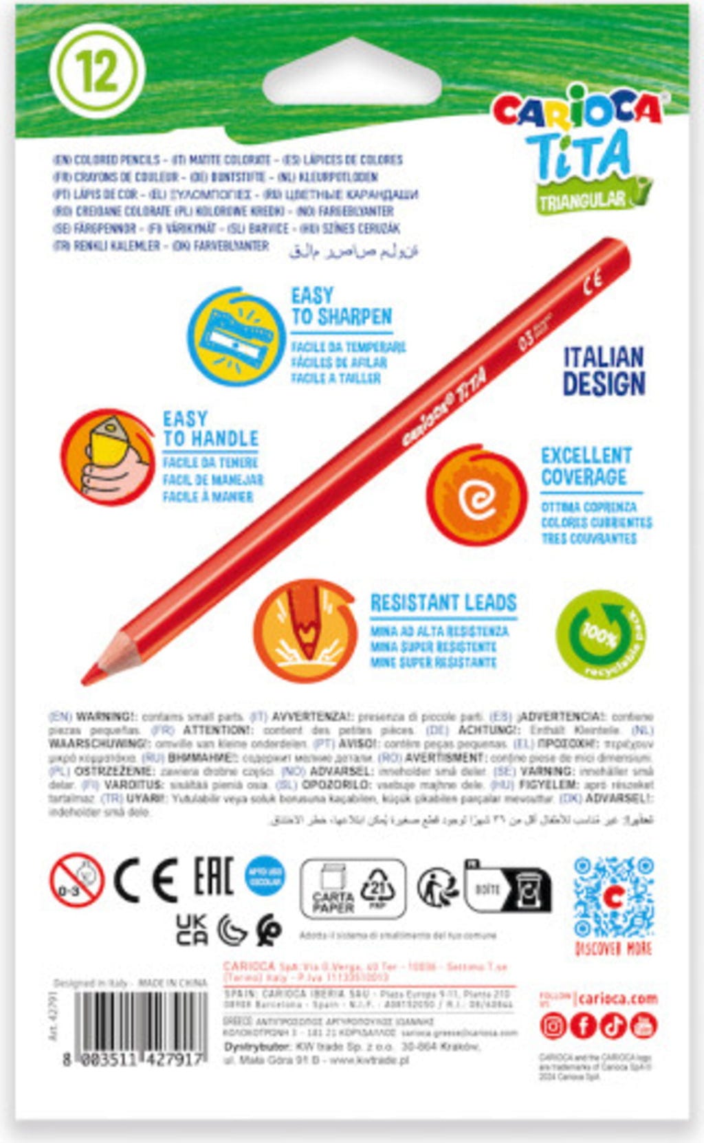 Carioca Tita Maxi Driehoekige Kleurpotloden, 12 Stuks