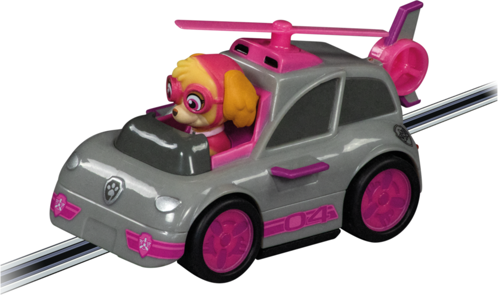 Maak plaats voor Skye! De schattige vrouwelijke Cockapoo kent geen angst. Het lid van de Paw Patrol probeert haar geluk op de Carrera-racebaan. Kan Skye de winnaar worden?