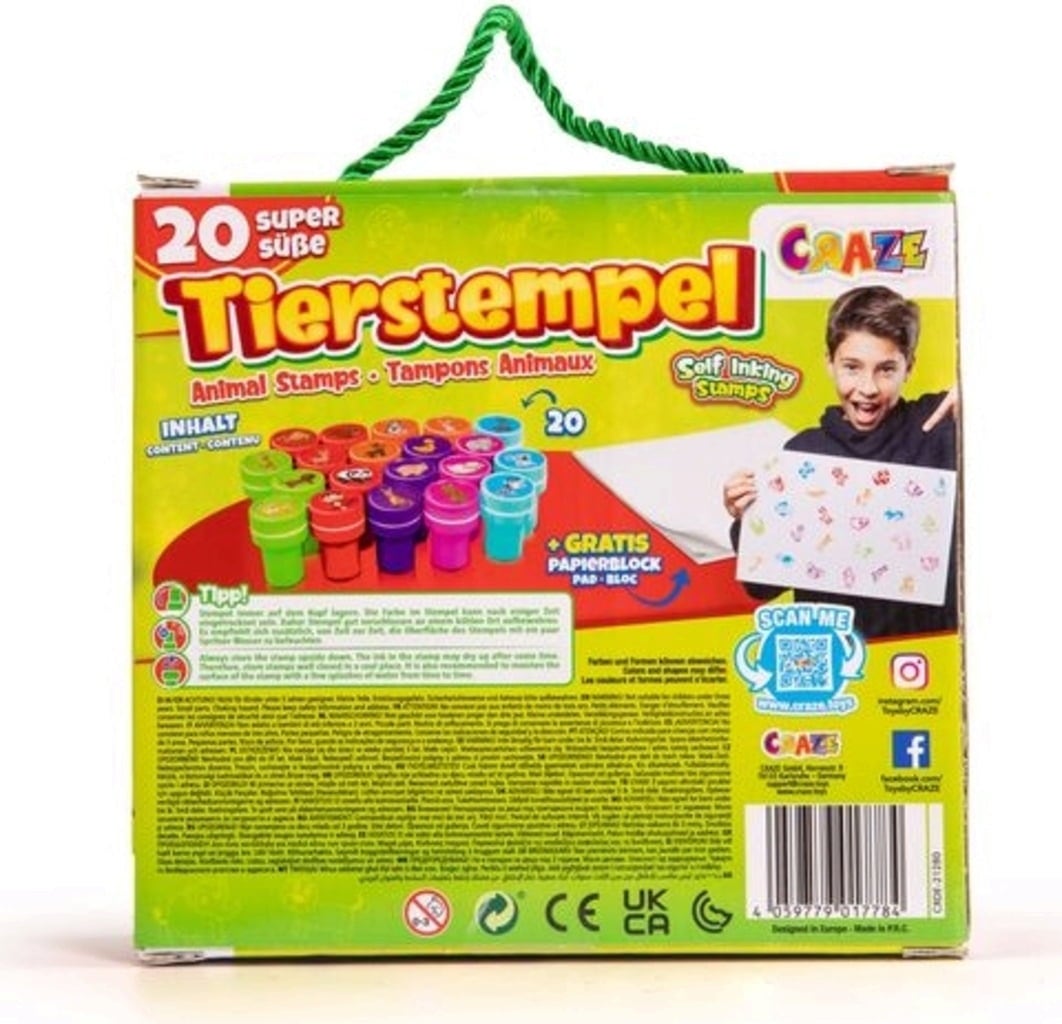 Wat is het schattigste dier ter wereld? Ontdek het met deze Dierenstempelset. 20 verschillende stempels om je tekeningen en foto's te verfraaien. Bijzonder praktisch: de inkt kan er gemakkelijk afgewassen worden.