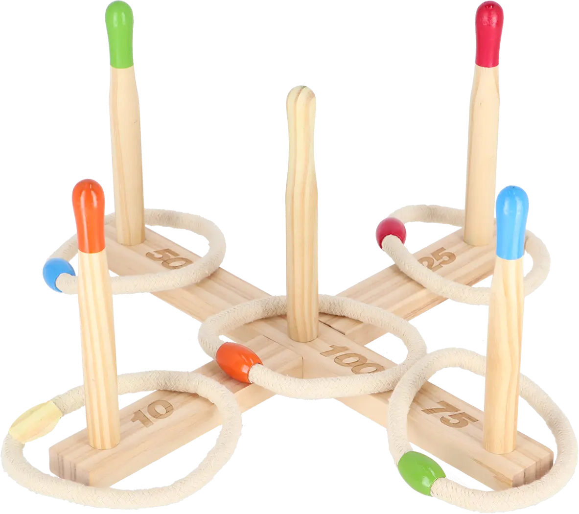 Dit klassieke behendigheidsspel zorgt voor speelplezier in de tuin en is niet alleen een hit op kinderfeestjes. Wie kan de ringen op de afzonderlijke stokjes laten landen?