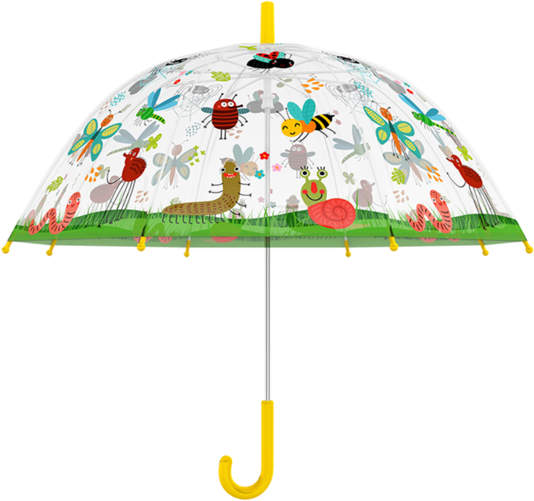 Een wandeling in de regen is bijzonder leuk met deze vrolijke insecten. Het transparante ontwerp met bijen, vlinders etc. nodigt uit tot ontdekken en verandert sombere regenachtige dagen in spannende avonturen. Het gewicht, de vorm en de afmetingen zijn speciaal afgestemd op kinderen zodat zij de paraplu goed vast kunnen houden en altijd droog blijven.