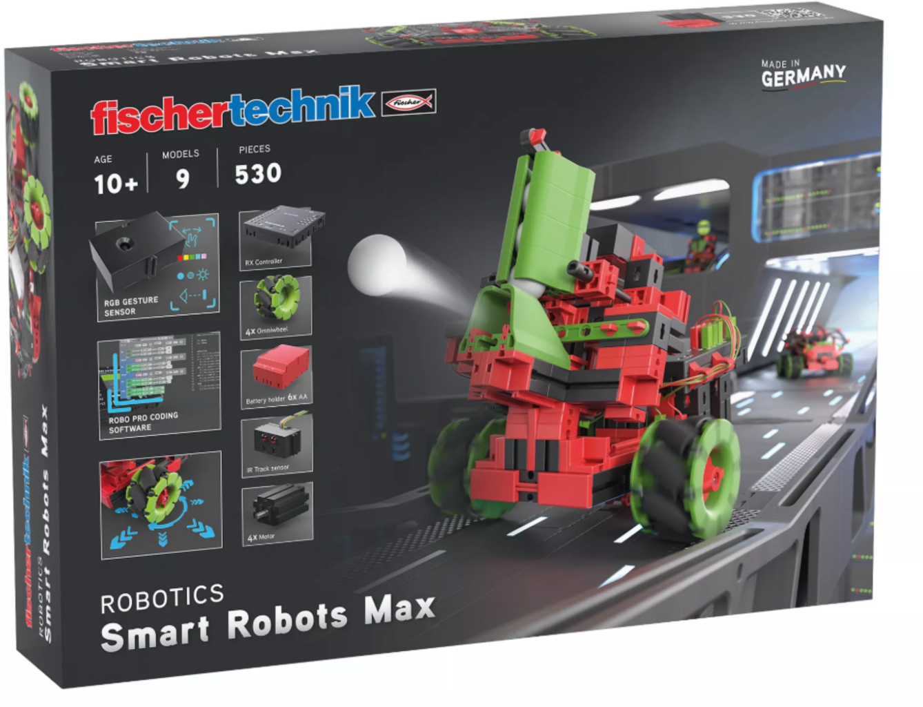 Met Smart Robots Max beginnen jonge uitvinders aan een spannende ontdekkingsreis in de wereld van de robotica. Van eenvoudige rijdende robots tot leuke dansende robots - alle modellen kunnen individueel worden geprogrammeerd met de grafische ROBO Pro Coding software. De omniwielen maken beweging in elke richting mogelijk, terwijl sensoren en knoppen extra interactiviteit bieden. Perfect voor nieuwsgierige geesten die technologie, creativiteit en plezier willen combineren.