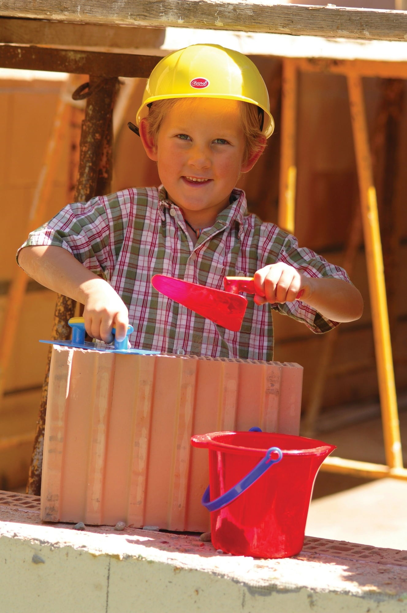 Deze metselset mag op geen enkele kinderbouwplaats ontbreken. Met het kleurrijke gereedschap is het mogelijk om het zand precies in de juiste vorm te brengen en zo fantasierijke gebouwen te maken.