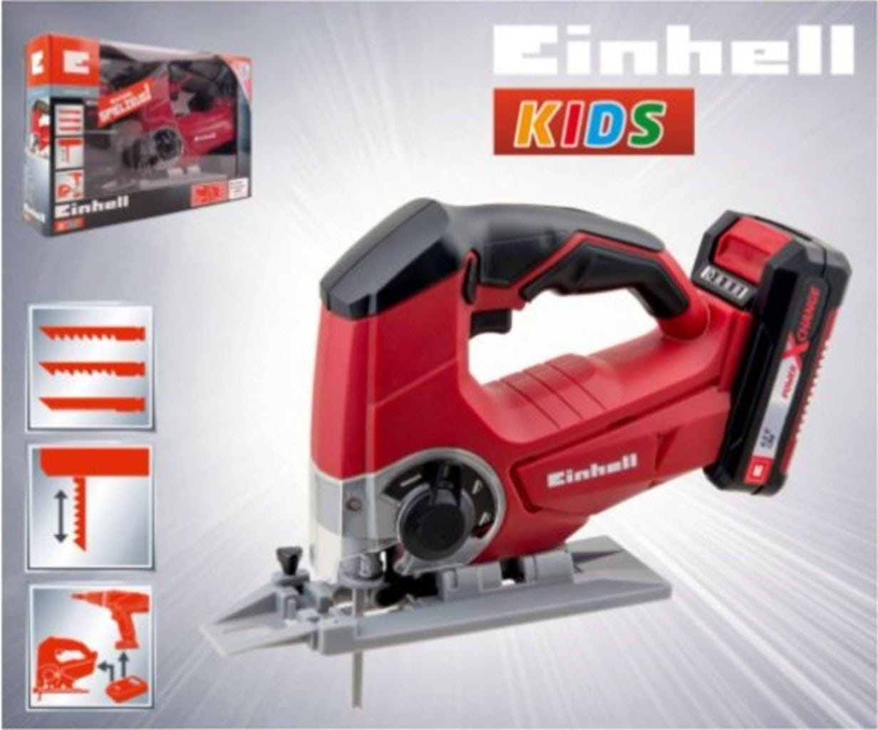 Met deze kindveilige decoupeerzaag van Einhell kunnen kleine knutselaars echt aan de slag. Net als zijn grote voorbeeld heeft de decoupeerzaag een vervangbare Power X-Change accu-eenheid. De drie verschillende zaagbladen en de realistische geluidsfuncties zorgen voor superieur speelplezier.