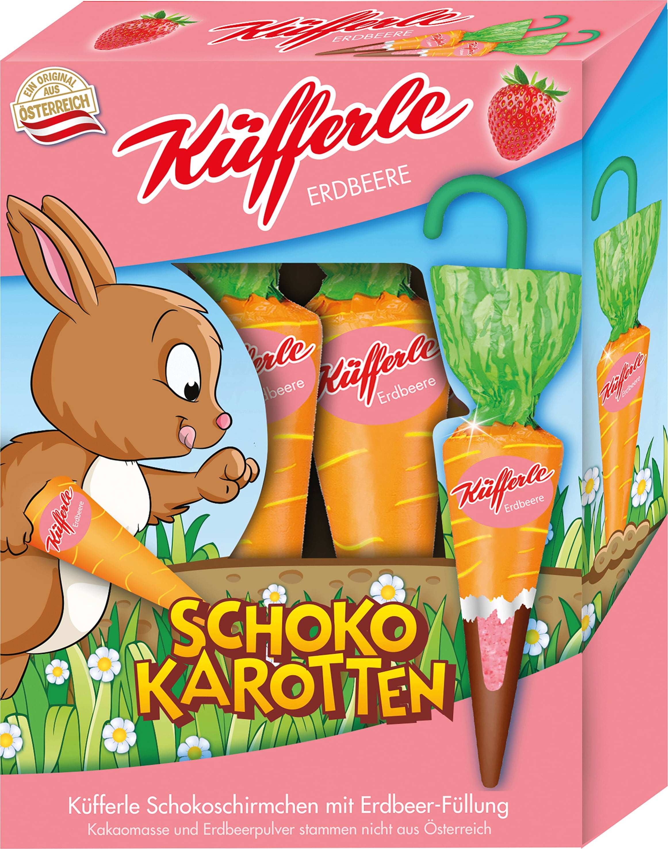 Met de Küfferle aardbei-chocolade worteltjes geef je een frisse twist aan je paastraditie! Je geniet van de heerlijke combinatie van fijne melkchocolade met een kern met fruitige aardbeiensmaak, die zorgt voor een verrassende afwisseling bij het snoepen. Deze kleurrijke blikvangers zijn ideaal om je paasgeschenken een extra visueel accent te geven of om je gasten te verrassen met een kleine, zoete attentie.