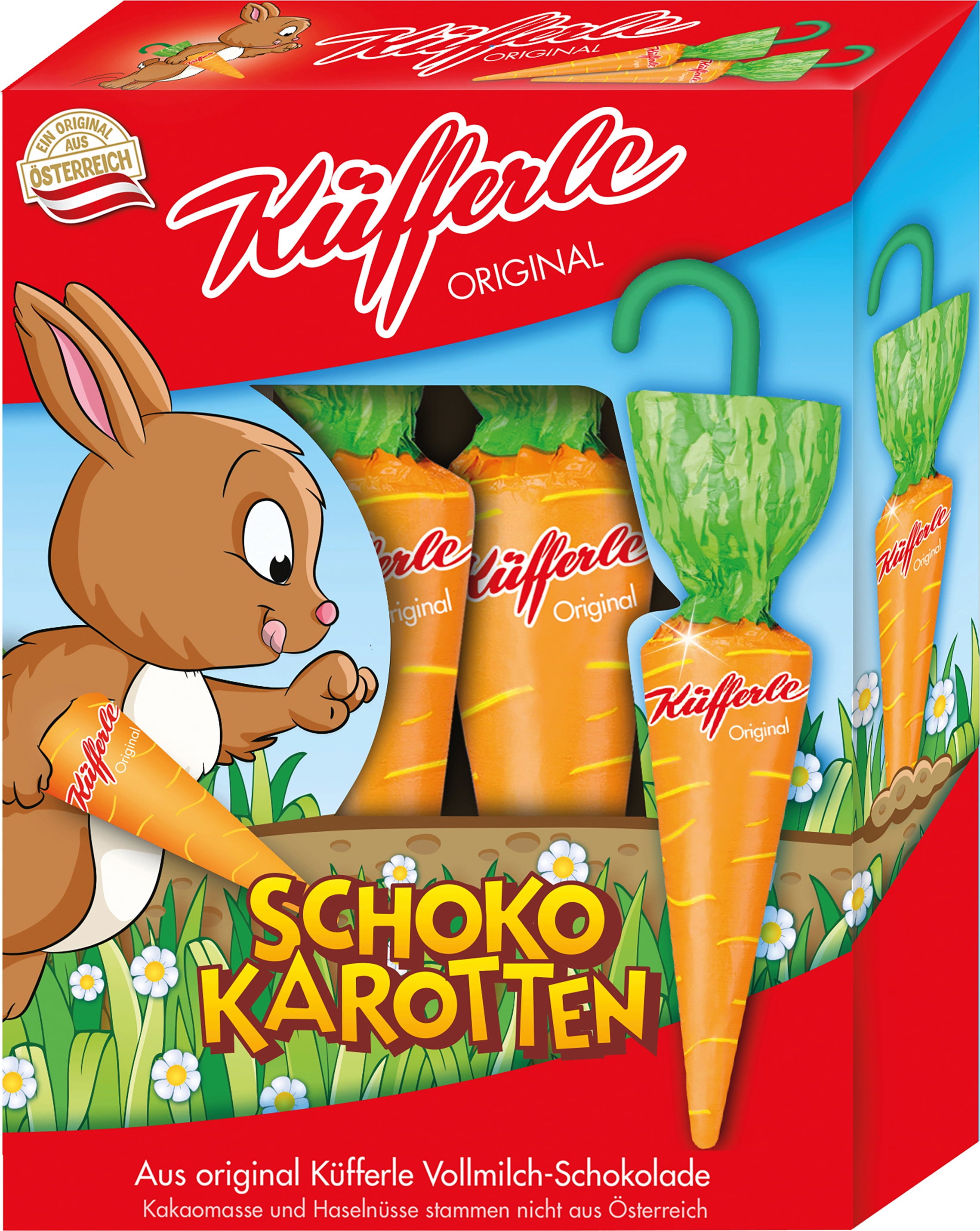 Küfferle chocolade wortelen zijn een echte klassieker voor in je paasmandje! Ervaar de zachte smeltende smaak van originele melkchocolade die er niet alleen geweldig uitziet, maar ook fantastisch smaakt. Of je ze nu gebruikt als een leuk cadeau voor een vriend of ze verstopt als zoete verrassing tussen kleurrijke eieren - deze kleine lekkernijen maken je paasfeest compleet!