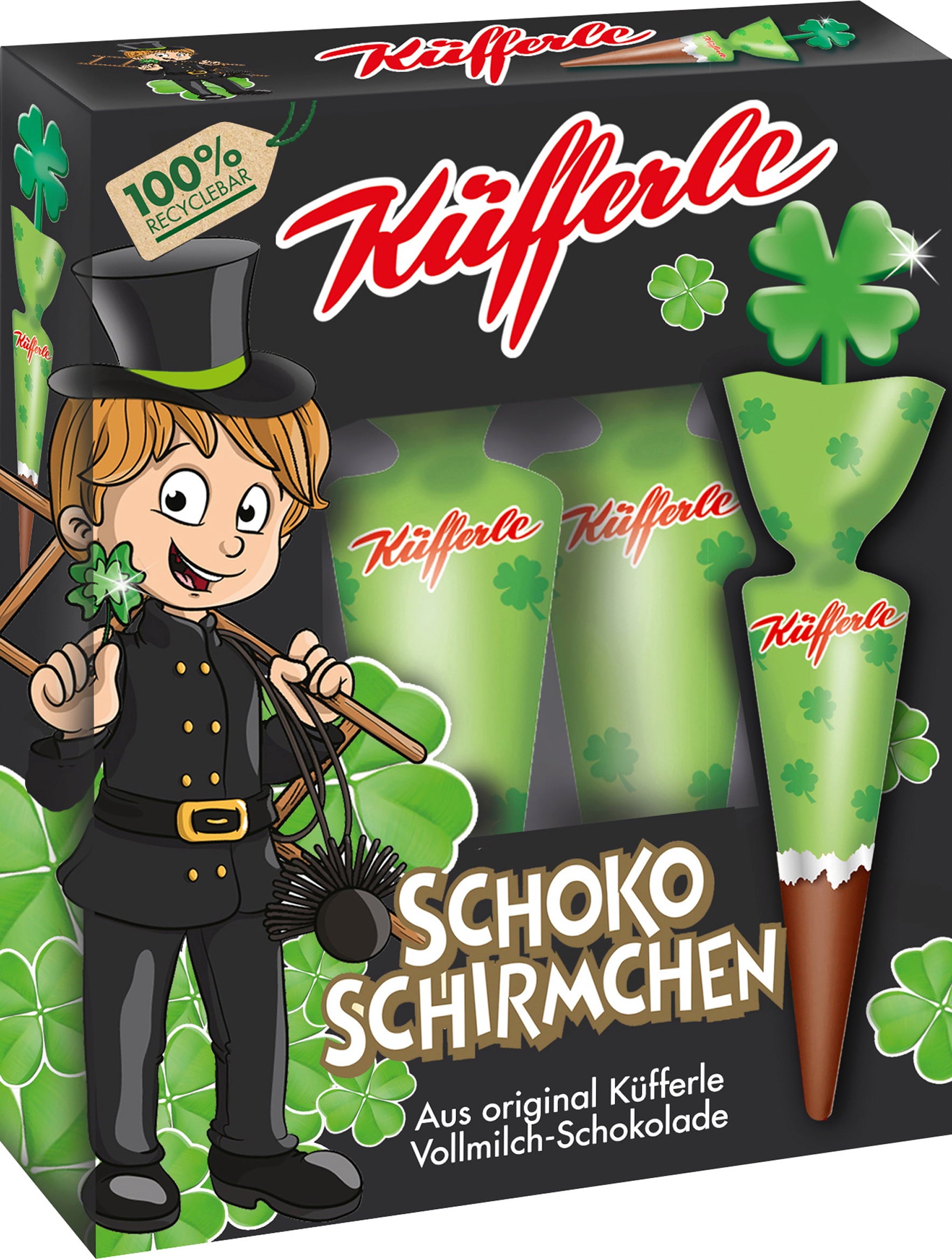Met deze heerlijke geluksbrenger kan het nieuwe jaar alleen maar succesvol zijn. Zoals gewoonlijk heerlijke en smeltzachte melkchocolade van Küfferle - de kleine parapluutjes die altijd zo onweerstaanbaar zijn geweest.