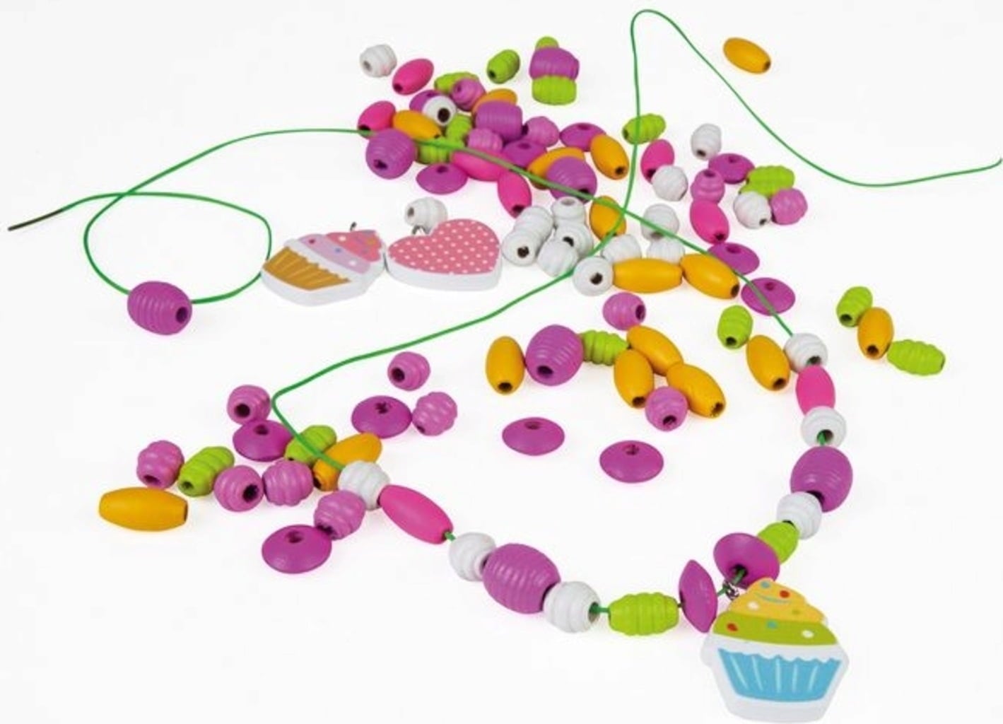 Creëer je eigen sieraden met de Cupcakes Houten Kralen. Laat je betoveren door deze set met meer dan 200 kralen en maak sieraden zoals jij ze mooi vindt.