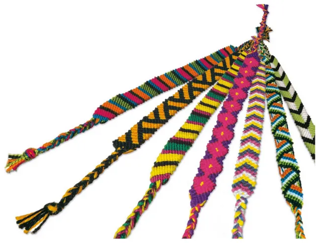 Creëer trendy armbanden voor jou en je vrienden. Combineer naar believen en laat je fantasie de vrije loop. Naast garen in 13 kleuren bevat de set ook sieradenkralen waarmee je de armbanden nog leuker kunt maken. De duidelijke instructies met foto's leiden je door alle stappen heen.