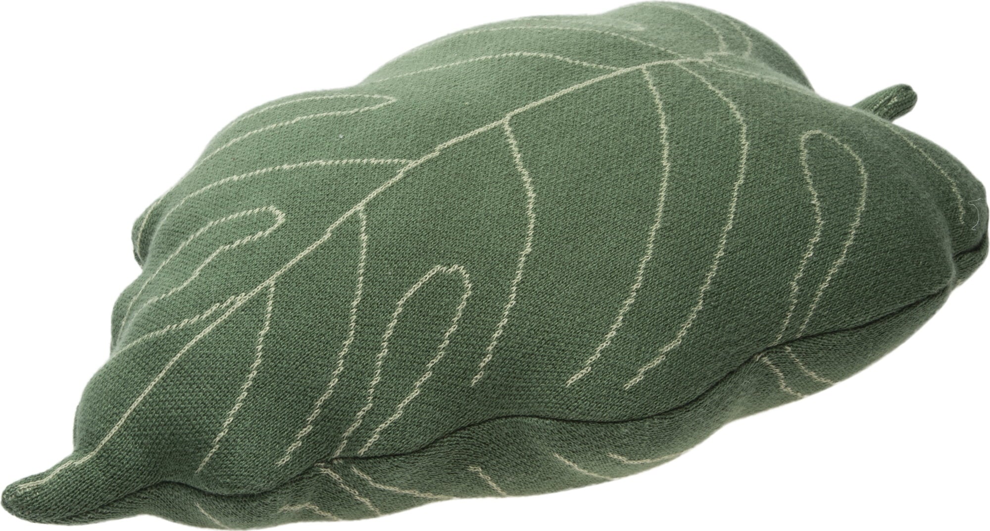 Dit luxueus handgebreide kussen overtuigt door zijn unieke design in de vorm van een blad en zijn uitzonderlijke, goede materiaalkwaliteit. Dit maakt het een mooi en gezellig accessoire voor kinder- en woonkamers.