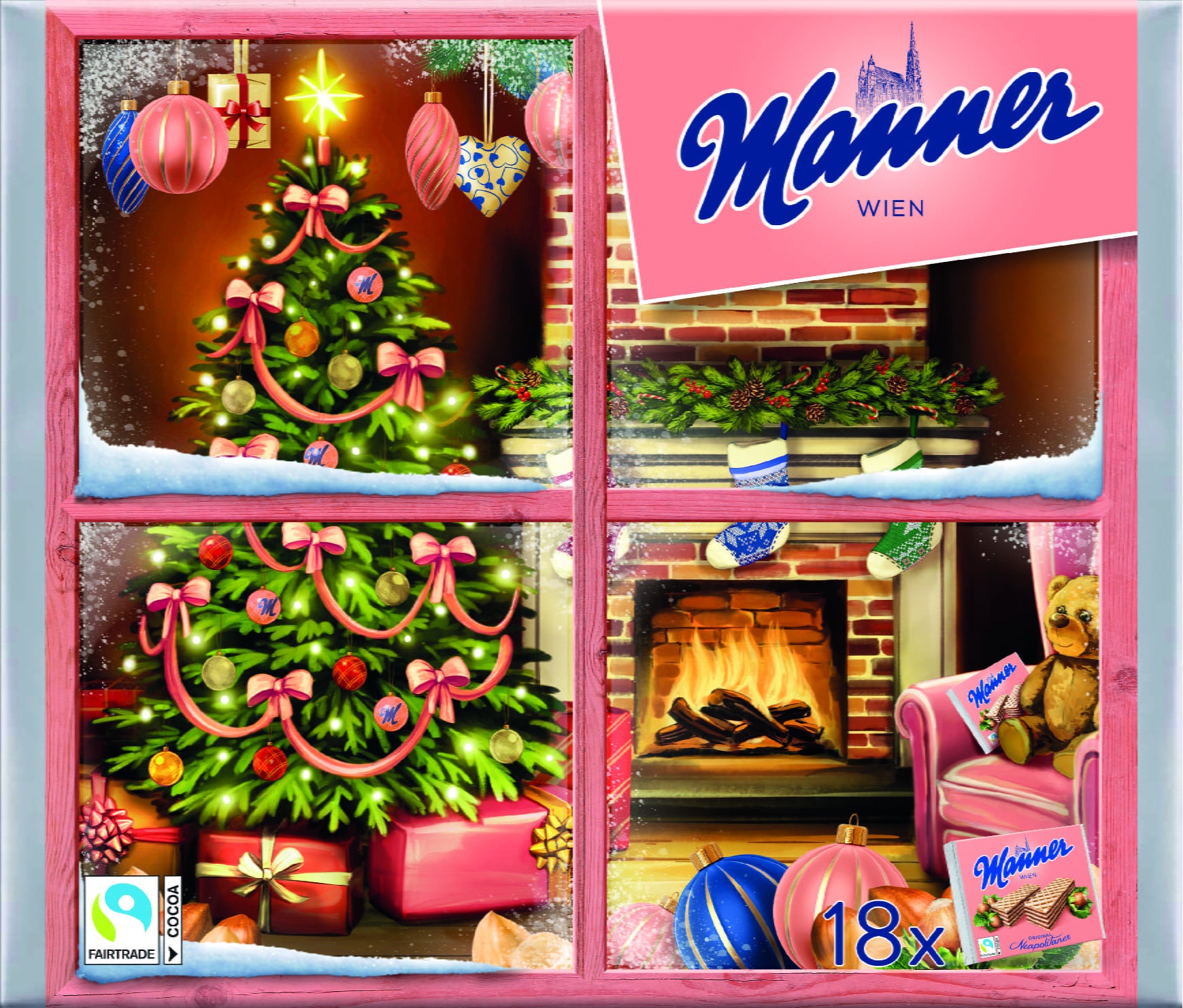 Manner Napolitaanse-Schnitten behoren tot de typisch Oostenrijkse zoetigheden en zijn geliefd bij jong en oud. Knapperige wafels en fijne hazelnootcrème zorgen samen voor dit onvergelijkbare genot dat bijna niemand kan weerstaan. Deze geweldige kersteditie heeft een feestelijke design en 18 pakjes heerlijke Napolitaanse wafels, en is het perfecte cadeau voor iedereen die van zoet houdt en fans van deze Weense specialiteit.