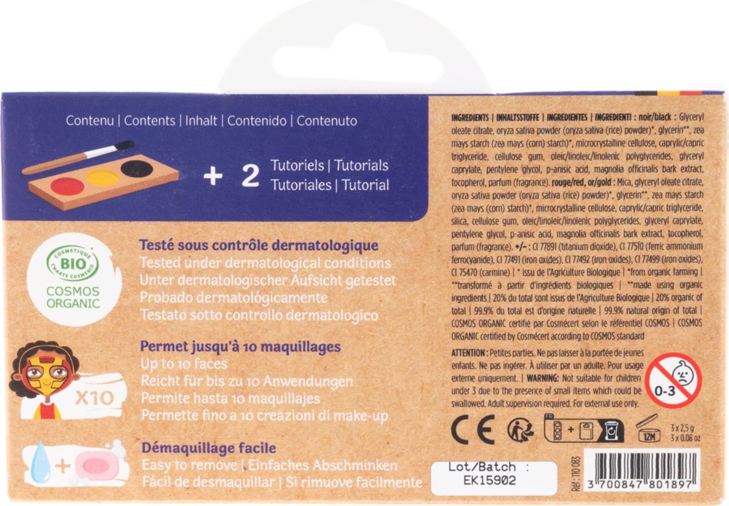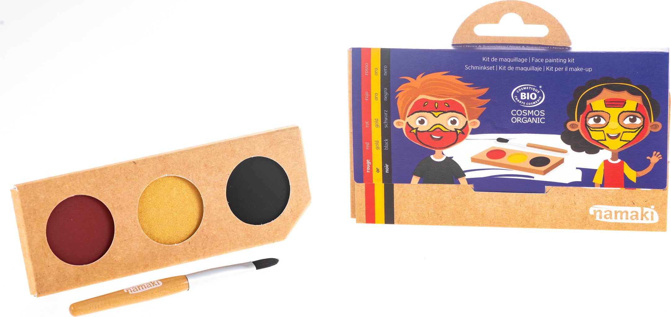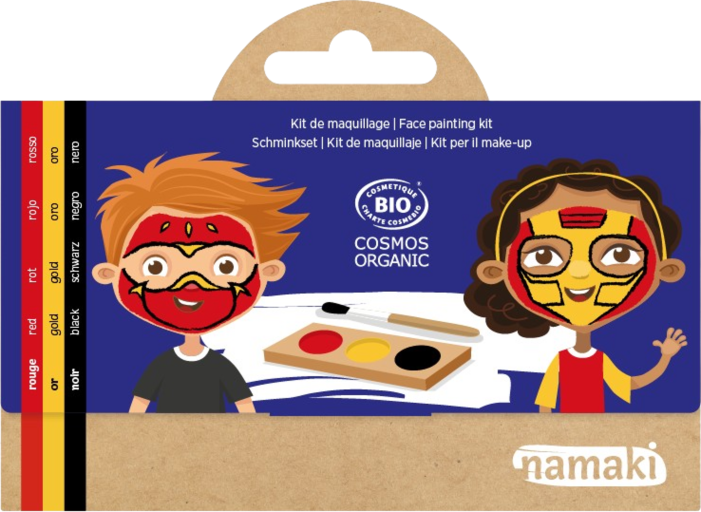Pak de kwast en transformeer jezelf in een mum van tijd in een ninja of zelfs een superheld met de kleuren zwart, rood en goud! De make-up kleuren zijn hypoallergeen, zacht voor de huid en vrij van schadelijke ingrediënten. Bovendien zijn ze er gemakkelijk weer uit te wassen.